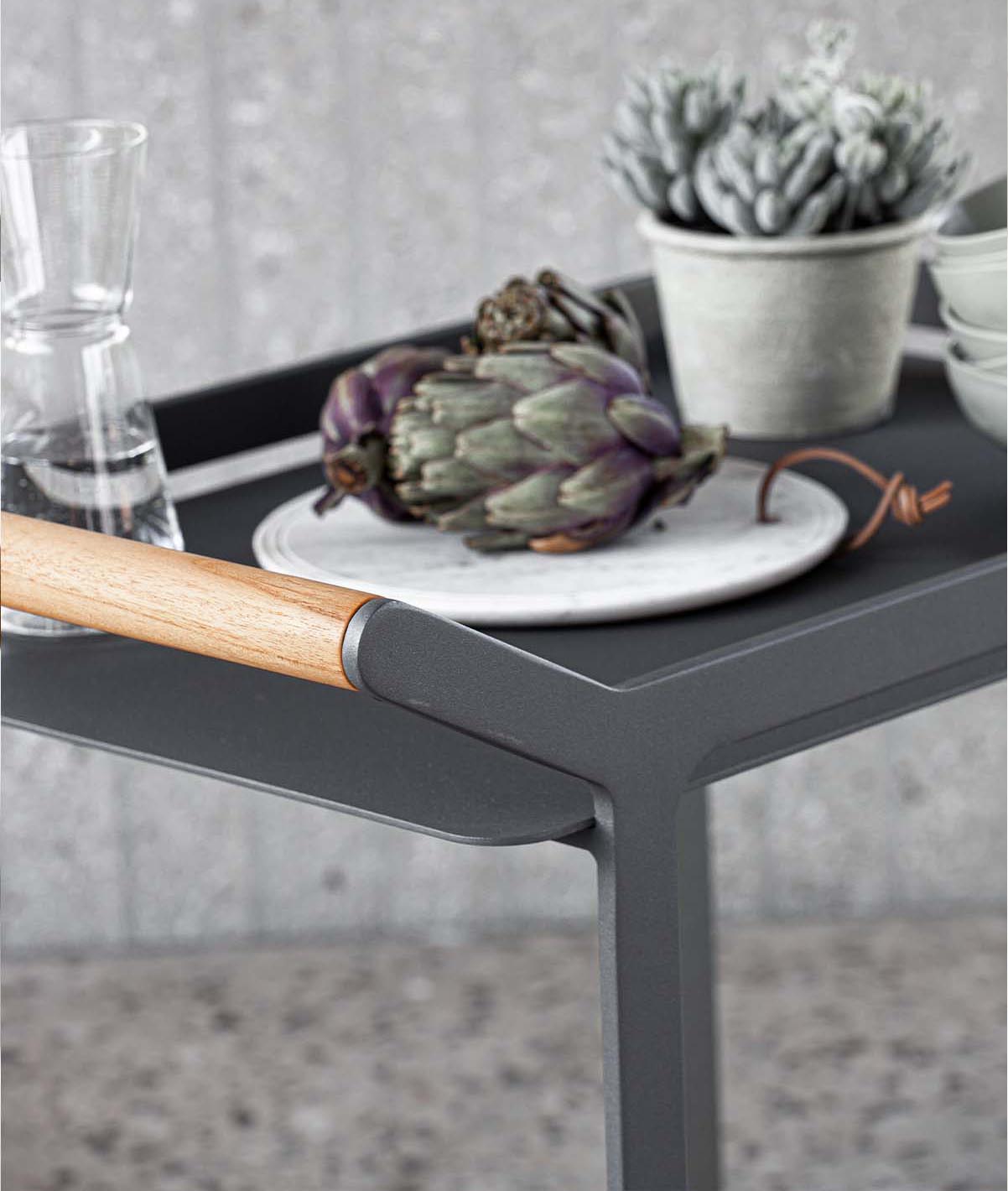 عربة بتلر ذات هيكل من الحديد المجلفن ومطلية بمسحوق الإيبوكسي للاستخدام الخارجي، وتفاصيلها مصنوعة من خشب الساج الآسيوي الصلب.