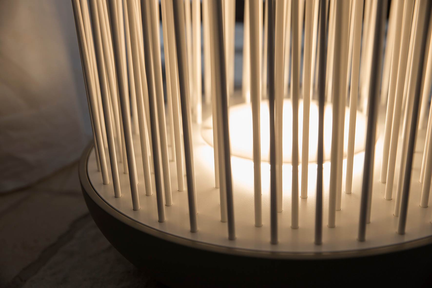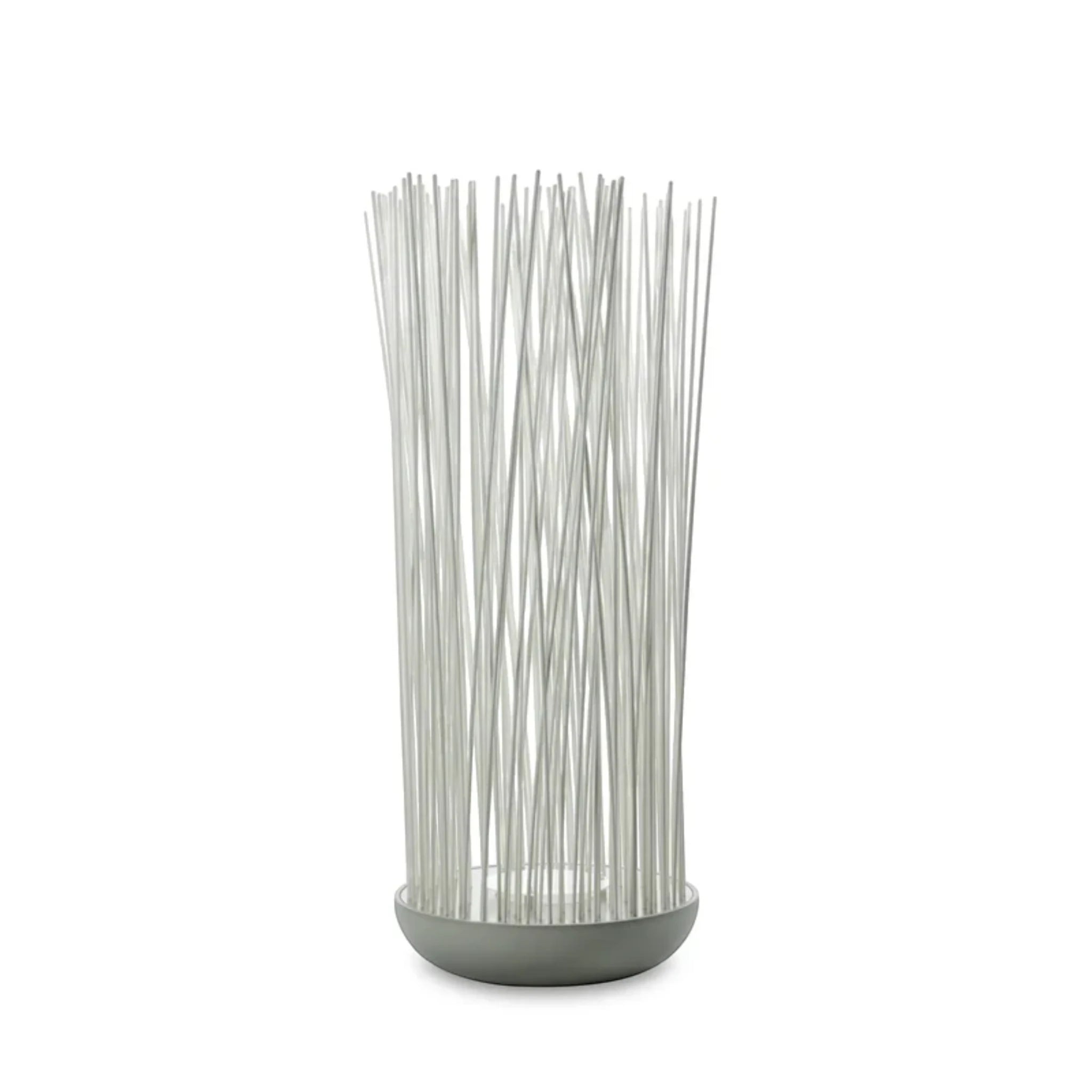 Don't Touch هو مصباح أرضي LED بتصميم حديث وأصلي. تنبثق سيقان رفيعة ومضيئة من قاعدة نصف كروية من البوليمر التكنولوجي الرمادي، تذكرنا بلعبة شنغهاي المعلقة. تعمل سيقان PVC البيضاء على نشر الضوء الناعم الذي يخلق جوًا موحيًا. باستخدام الحلقة الدائرية المتضمنة، يمكن جمع السيقان لتغيير مظهرها وتحويلها إلى هيكل خفيف صغير. مثالي للبيئات الخارجية مثل الحدائق أو المدرجات أو بجانب حمام السباحة.
