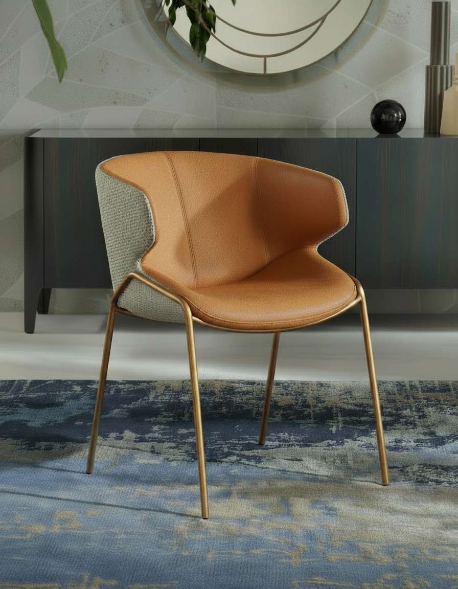 صورة توضيحية، الموديل متوفر بإطار من البرونز المصقول، ومقعد من قماش مير، ومسند ظهر من قماش إيشيا.