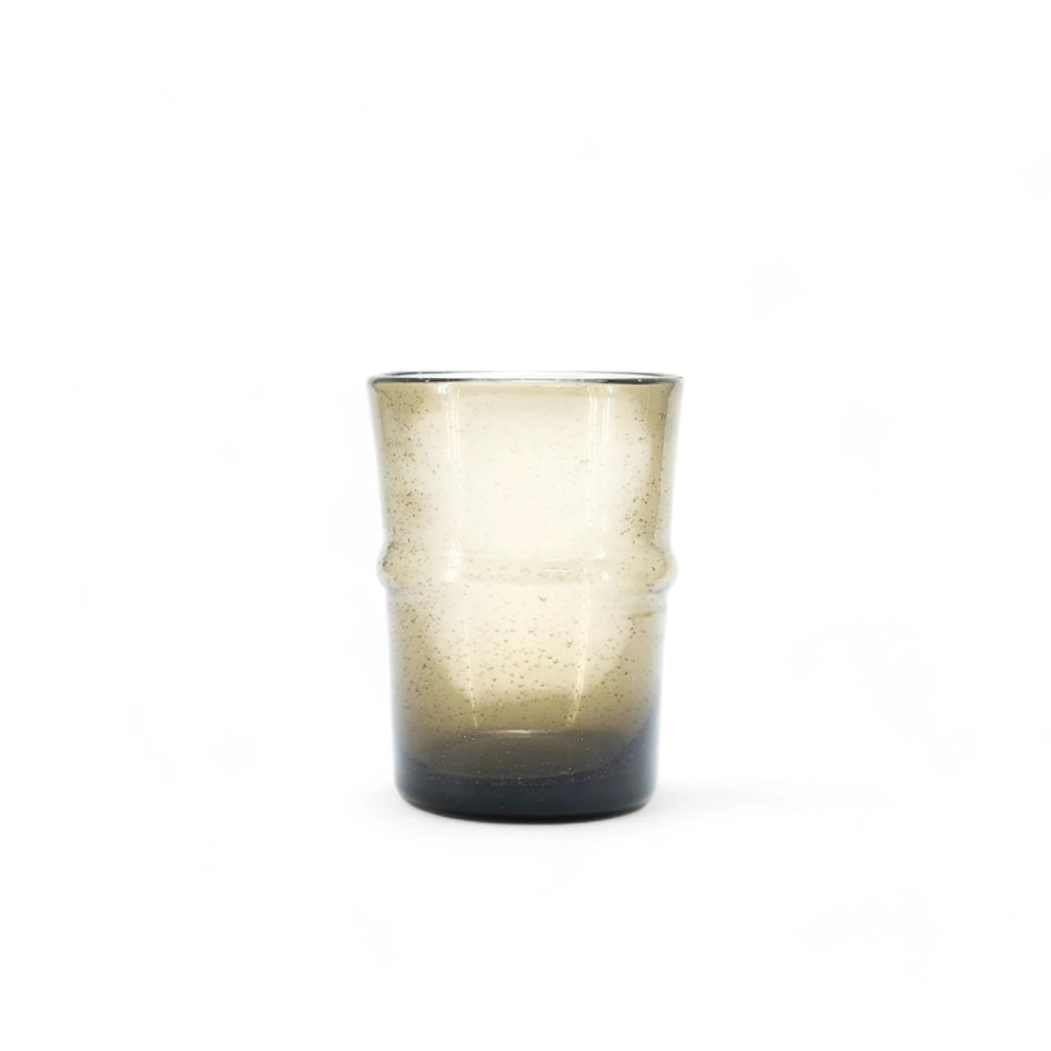 مجموعة من 4 أكواب مشروبات فقاعية من الزجاج المنفوخ. تعد الاختلافات في السمك واللون وعدم انتظام الزجاج جزءًا من عملية التصنيع.