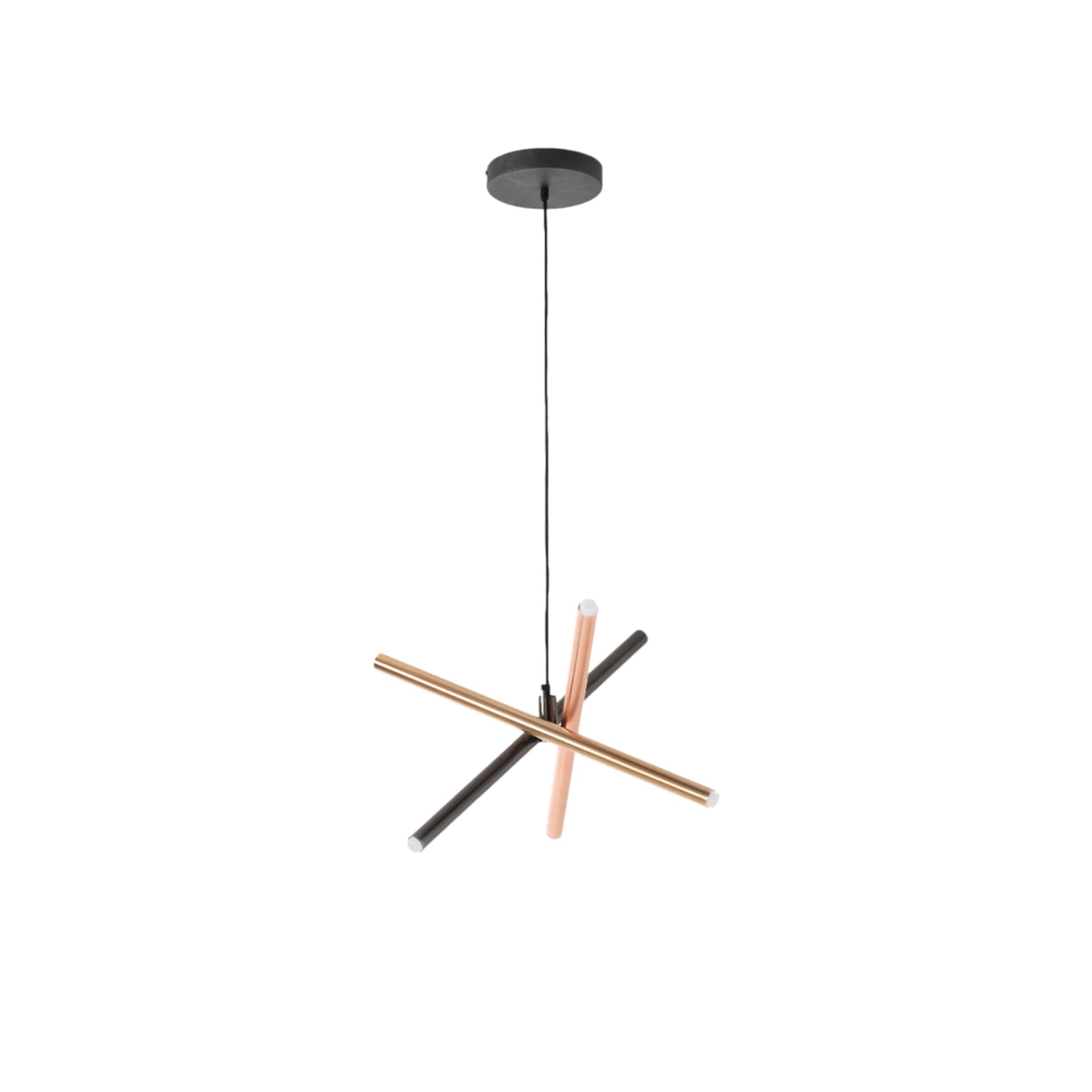يتميز مصباح شنغهاي المعلق بثلاثة أنابيب معدنية مطلية، تخضع لمعالجة كلفانية من الساتان. يضم هذا الهيكل ستة مصابيح LED اتجاهية ثابتة، مصممة لتوفير إضاءة فعالة وموجهة.