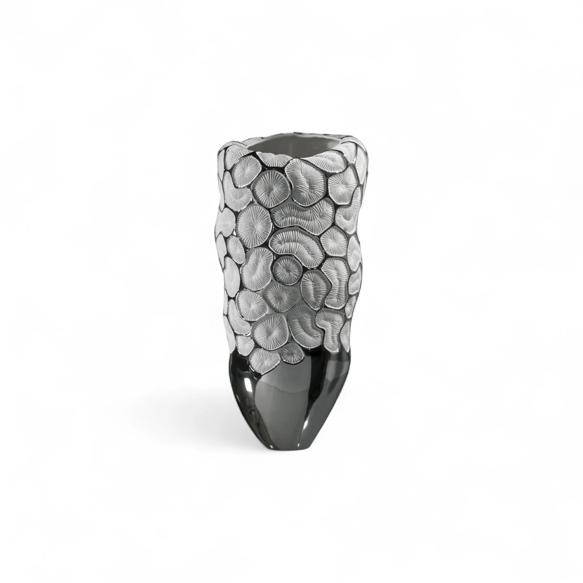 بفضل تركيبته الرائعة وإتقان الأشكال ودقة تفاصيل الخزف غير المزجج، يتميز مزهرية بوسيدون من مجموعة فوسيليا بملمس مثير يرمز إلى حفريات المادريبوريس ويعمل كهيكل عظمي لهذه القطعة الرائعة.