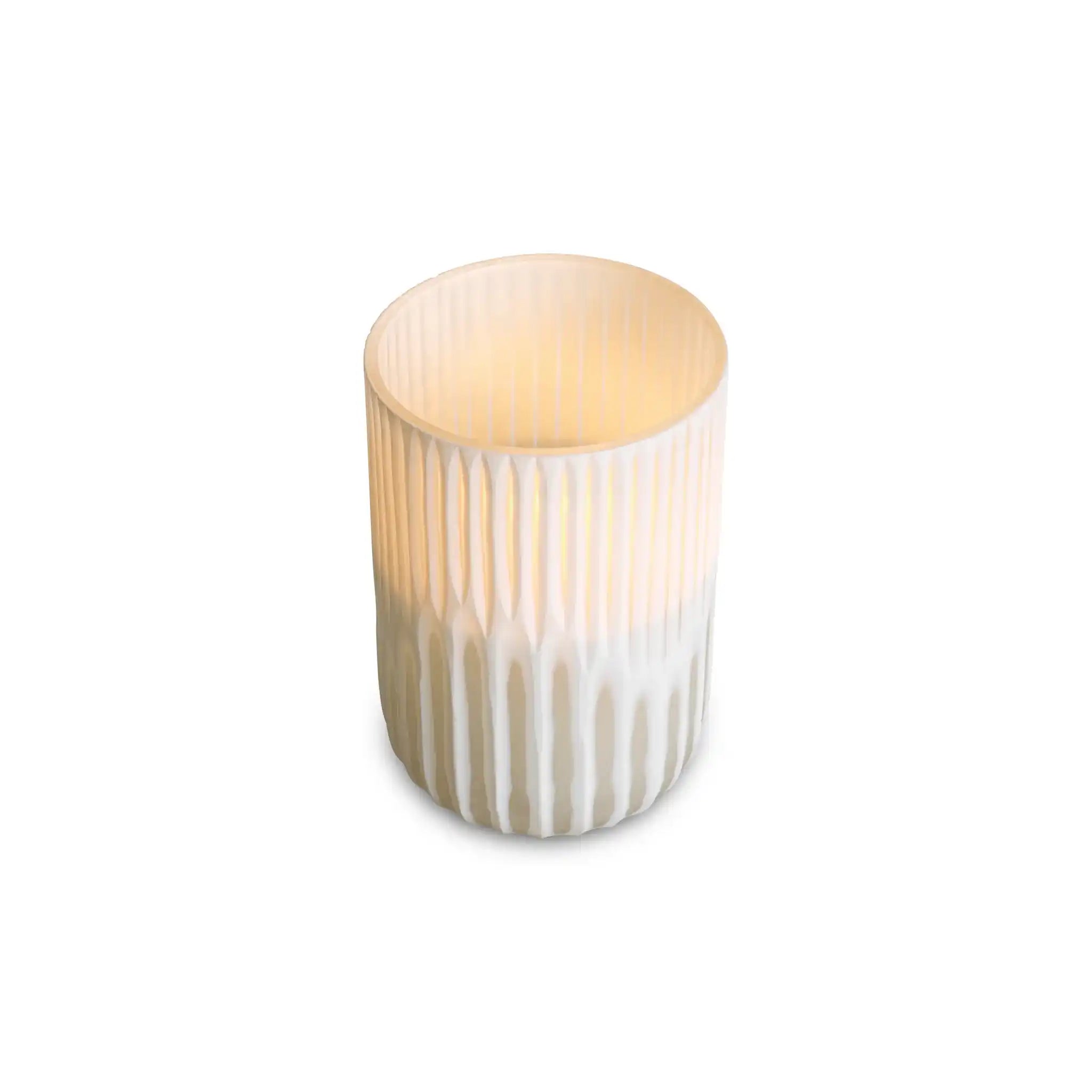 Decora i tuoi spazi con l'elegante portacandele Westgrove. Realizzato a mano in vetro con motivo intagliato, questo portacandele si integra in ambienti classici o moderni. La finitura bianca opaca diffonde una luce calda. Ideale su consolle, caminetti o tavoli.