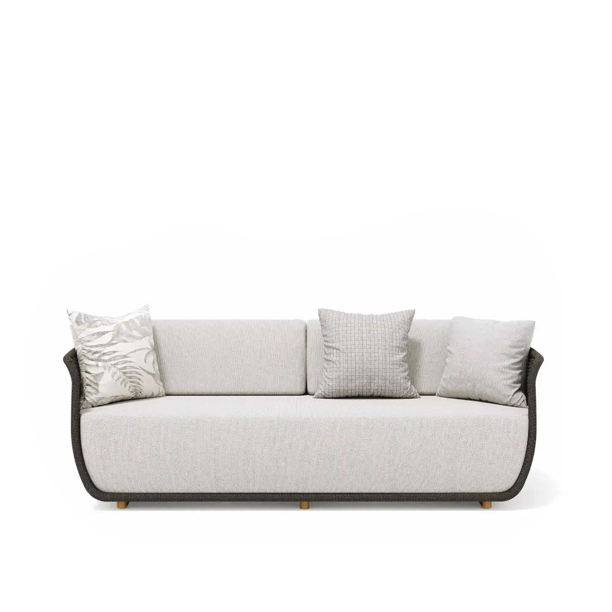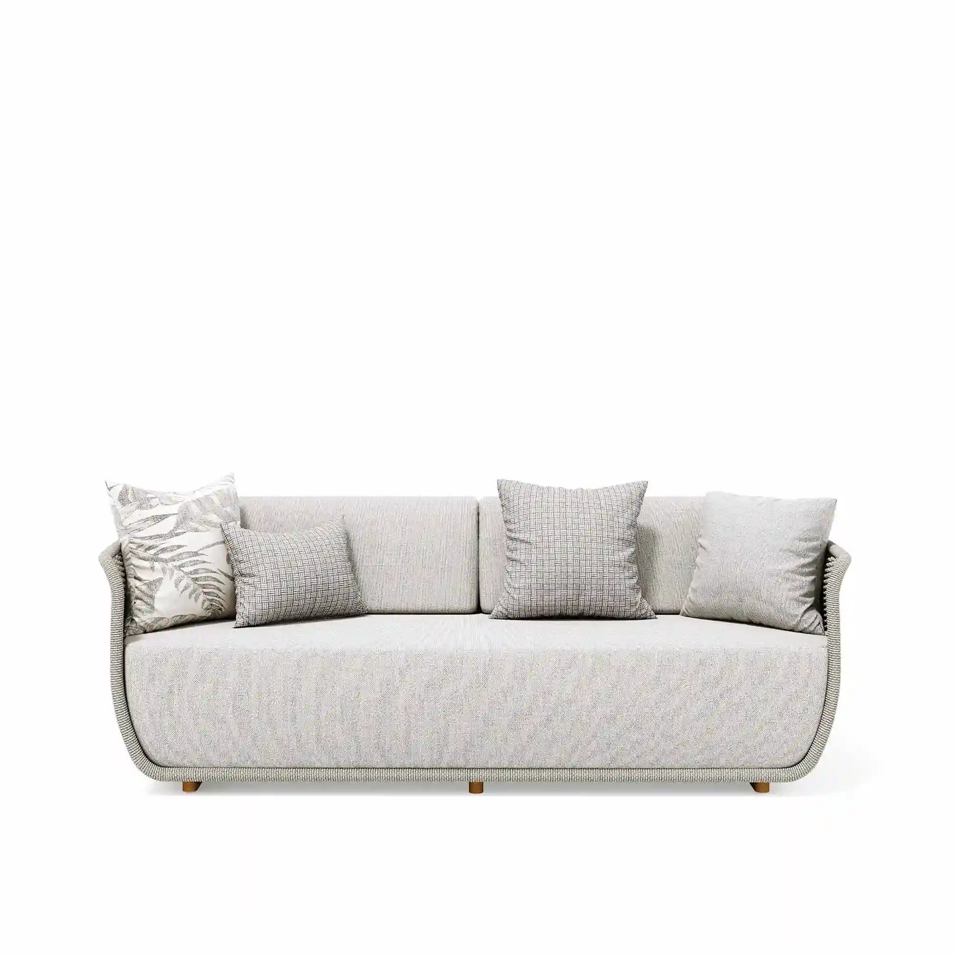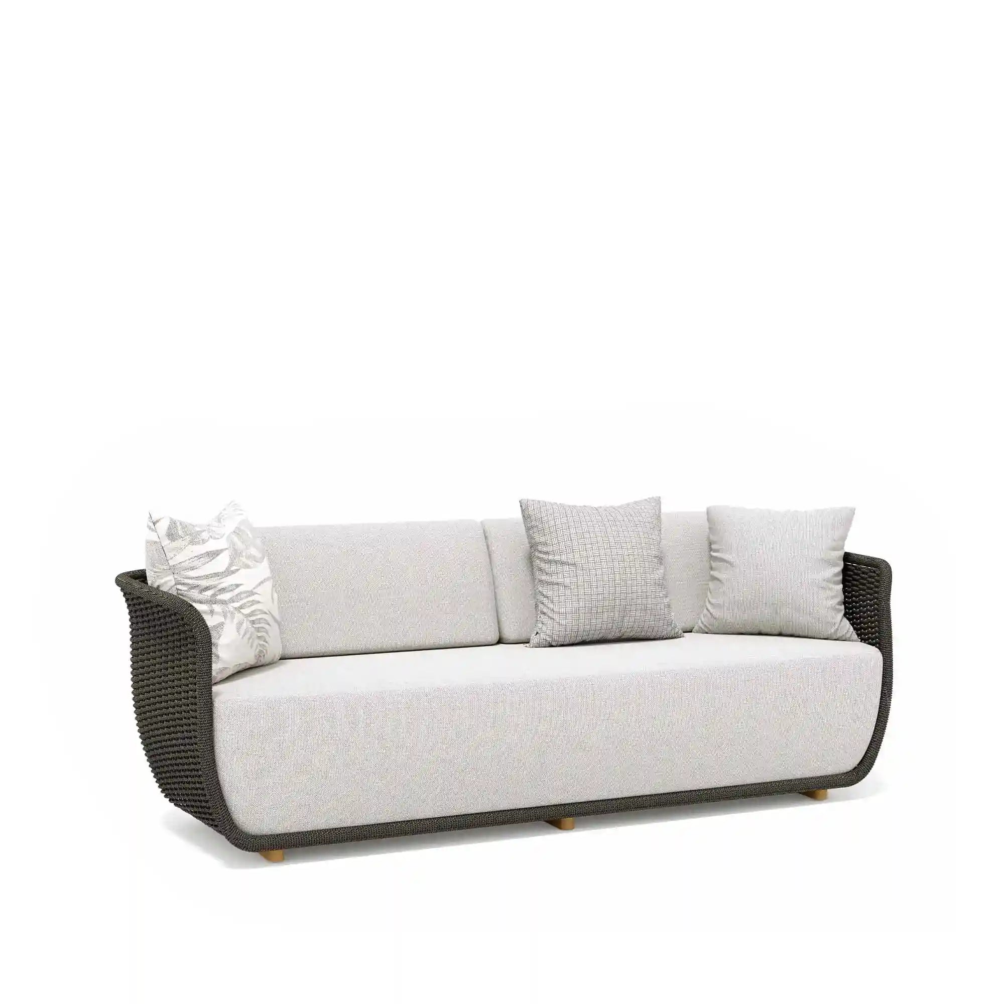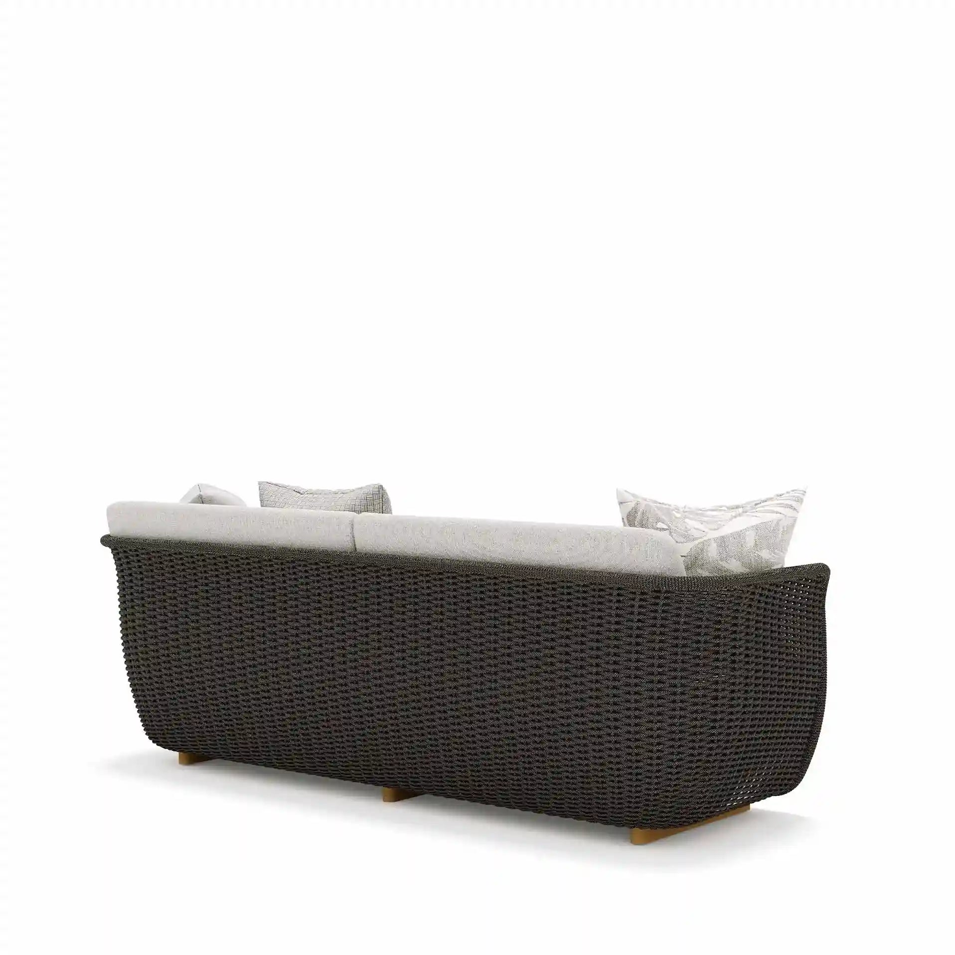 Sottili assonanze cromatiche disegnate dalla corda intrecciata a mano, elemento unificatore dell’intera collezione Bellagio. Prodotti che creano atmosfere leggere ed offrono piccoli piaceri permanenti con una ricca mescolanza di artigianalità e design. Poltrona e divano compongono la serie e si caratterizzano per un intreccio leggero, che lascia trasparire la luce, realizzato in filato di acrilico melangiato.