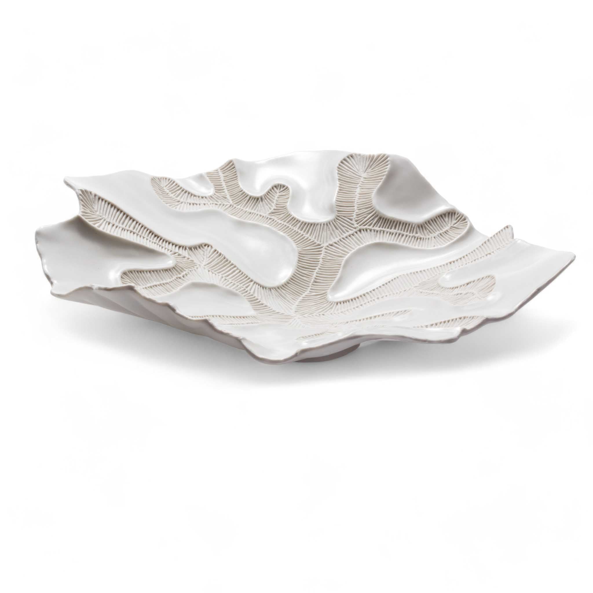 Nymfa è un oggetto artistico in porcellana bianca ispirato ai fossili di madrepora, realizzato a mano in Italia.