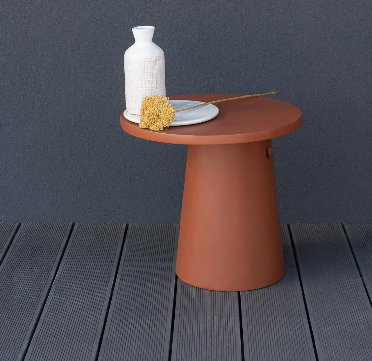 Totem tavolo basso da esterno in cemento alleggerito con finitura concrete e colore Siena. Il tavolo Totem, con la sua silhouette unica, non è solo funzionale ma un vero simbolo di stile e modernità outdoor. Design unico, eleganza contemporanea: perfetto per arricchire qualsiasi spazio esterno.