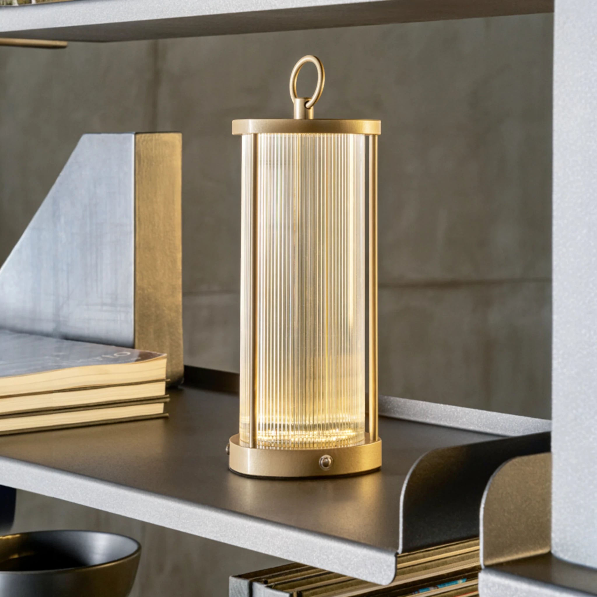 Giò Giò è la nuovissima lampada da tavolo che richiama la forma delle lanterne, oggetti simbolici che guidano e rassicurano. Linee pulite ed equilibrate caratterizzano la struttura in alluminio che racchiude un paralume in metacrilato trasparente striato da cui nascono accattivanti suggestioni luminose che rimandano a paesaggi lontani e mete inesplorate. Ricaricabile con cavo USB, è perfetta per essere movimentata a proprio piacere.