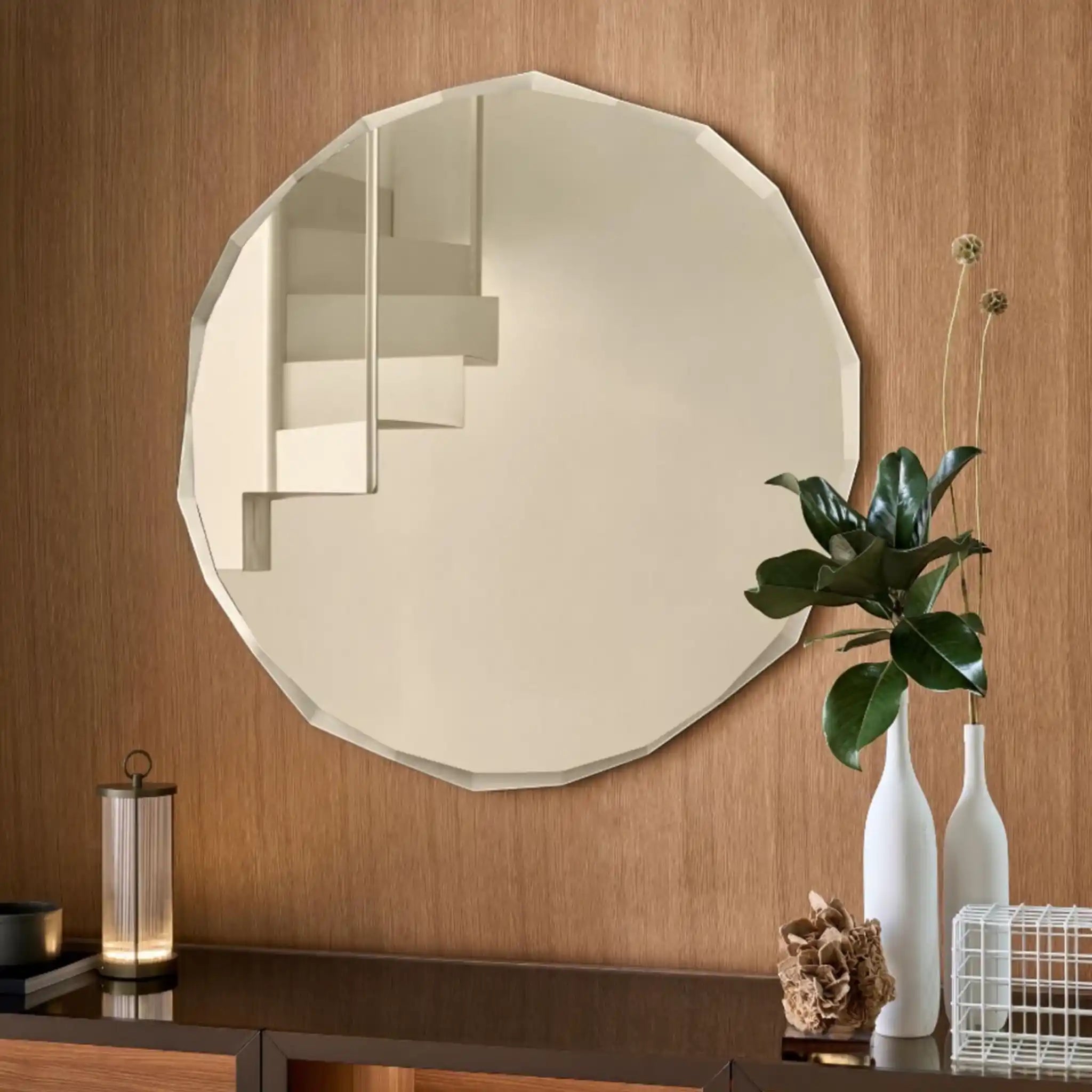 Un design che resiste alla prova del tempo, per lo specchio Pandora. Plasmato da materiali preziosi, nasce dall’alta competenza degli artigiani Riflessi, la cui maestria ha dato vita ad uno specchio iconico interamente in cristallo, caratterizzato dall’irregolarità dei bordi bisellati. Un oggetto funzionale dall’indiscutibile eleganza. Specchio con cornice perimetrale con bisellatura irregolare.