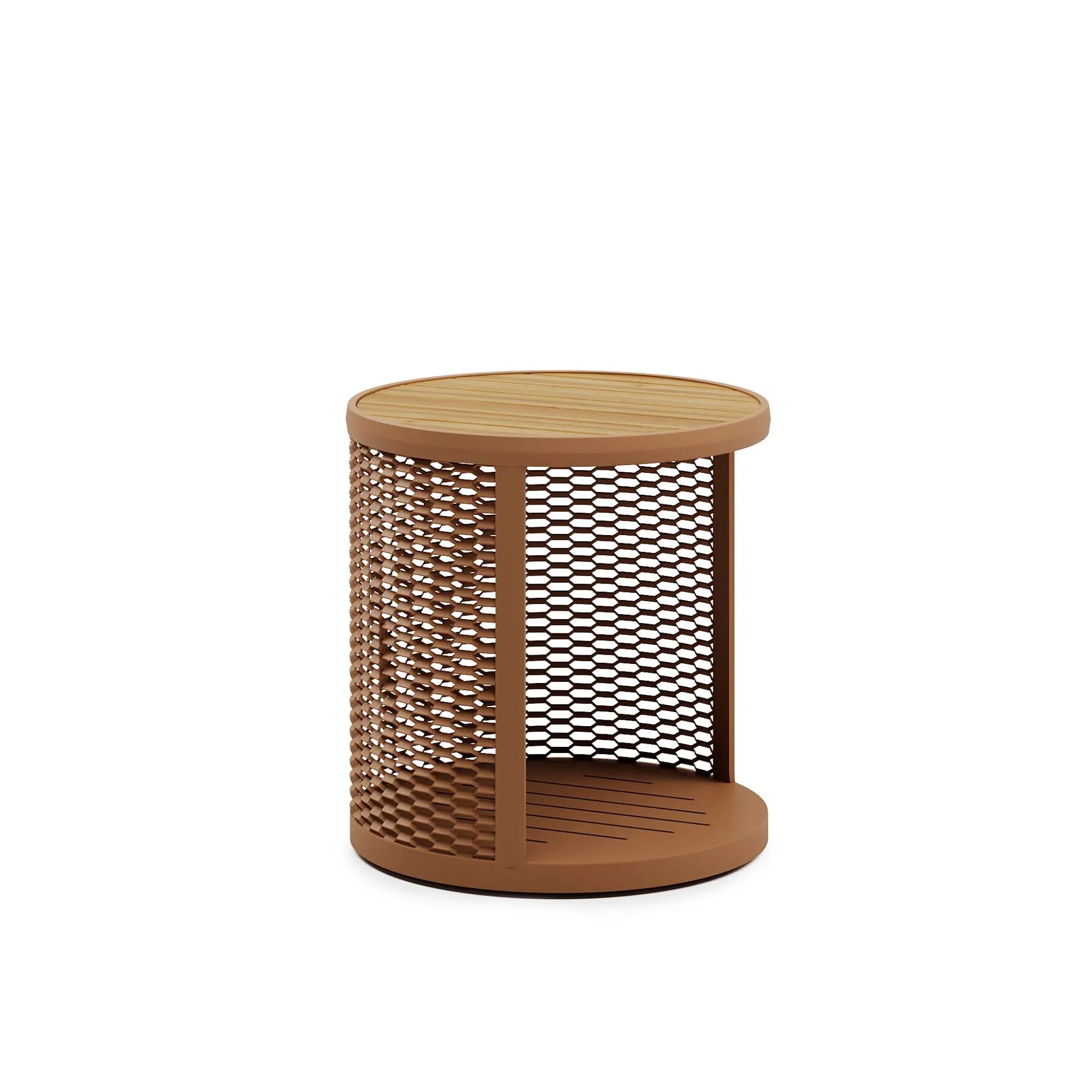 L’ispirazione cresce osservando le cose più semplici. Una lamiera stirata in alluminio evolve in una texture sulla quale inventare molteplici moduli e creare la composizione che più corrisponde alla natura dello spazio. Switch è un tavolino realizzato in due dimensioni diverse per adattarsi a qualsiasi spazio. Struttura in alluminio, rete in alluminio e top in teak.