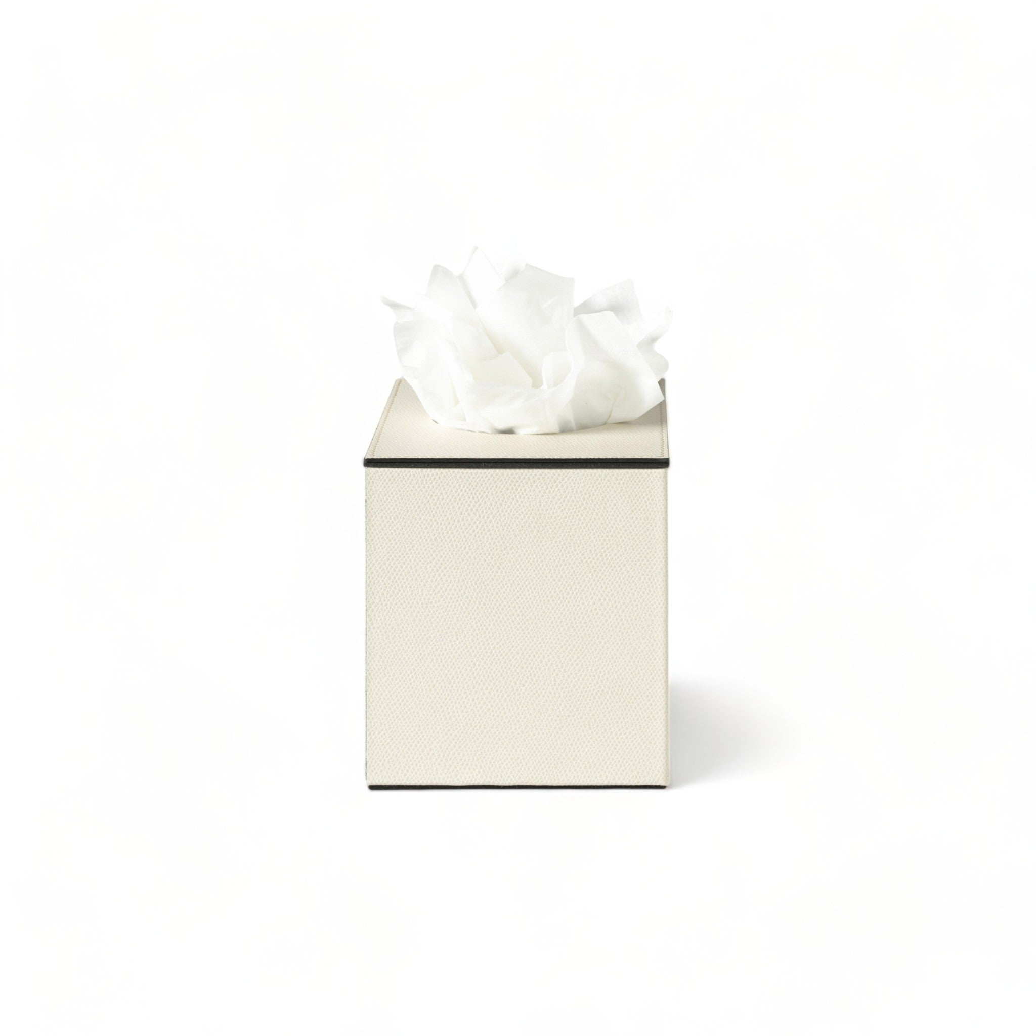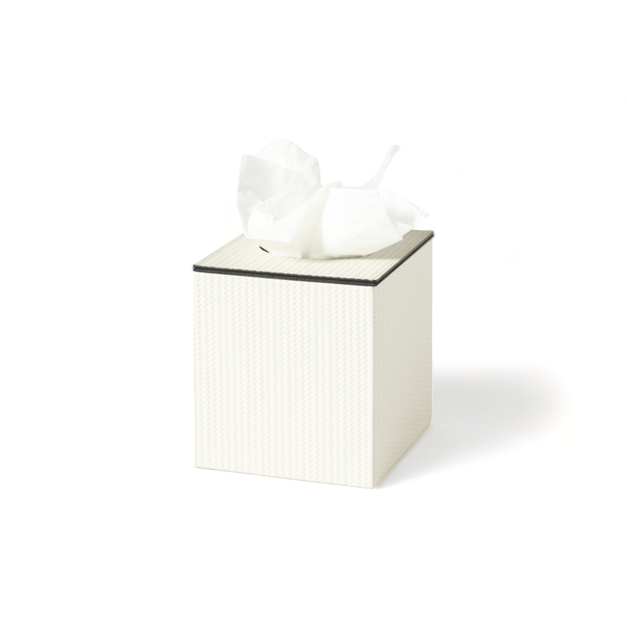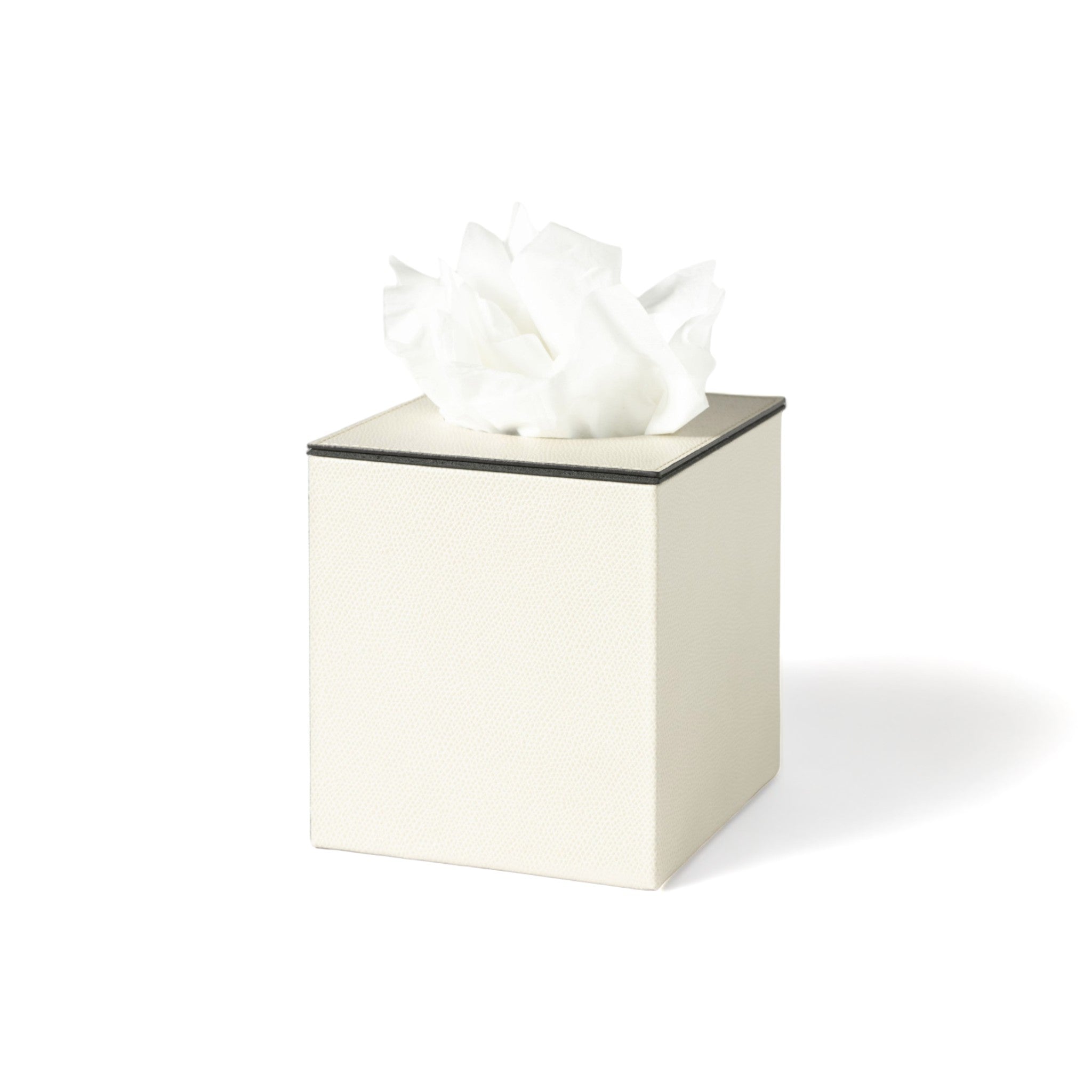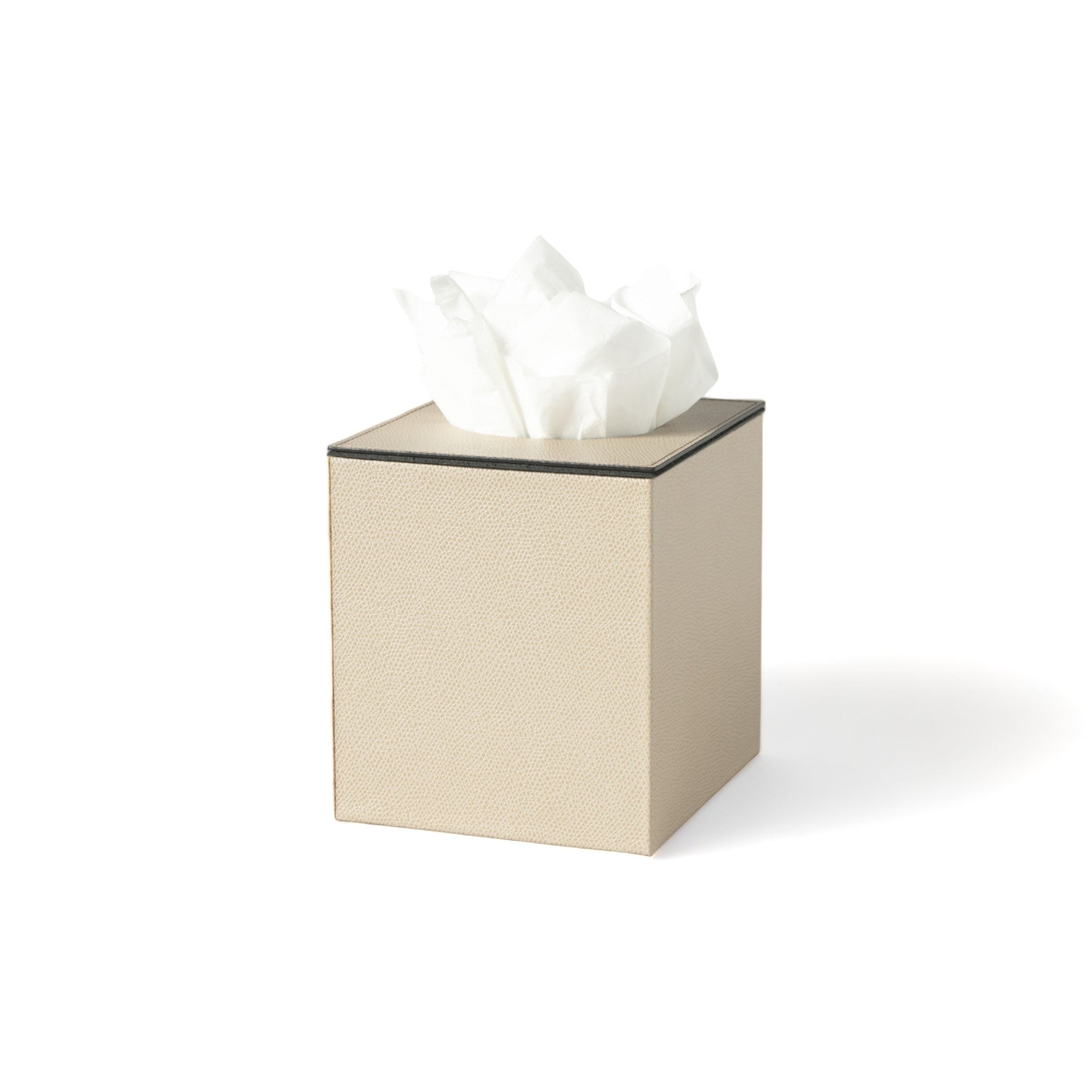 Porta fazzoletti in legno rivestito in pelle, con coperchio a chiusura magnetica.