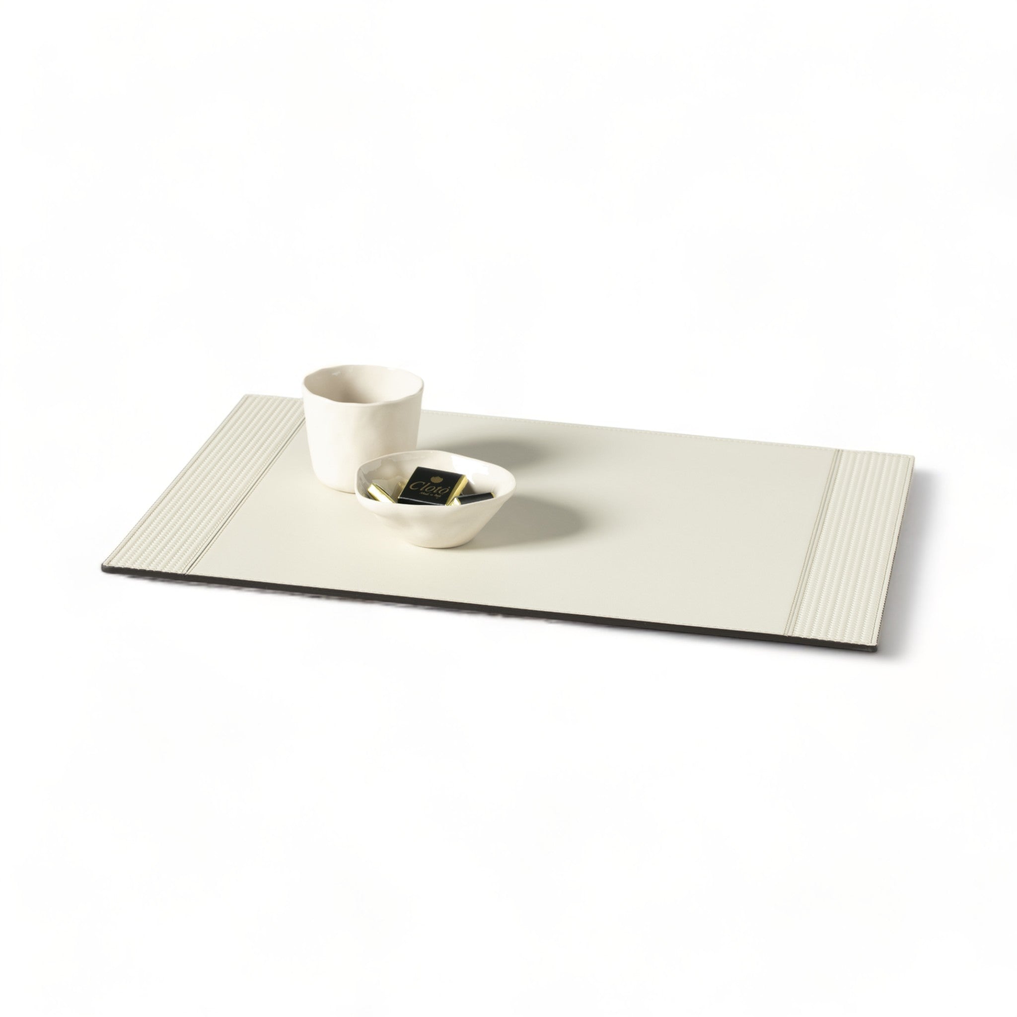 Sottopiatto rettangolare in pelle, con fasce laterali.