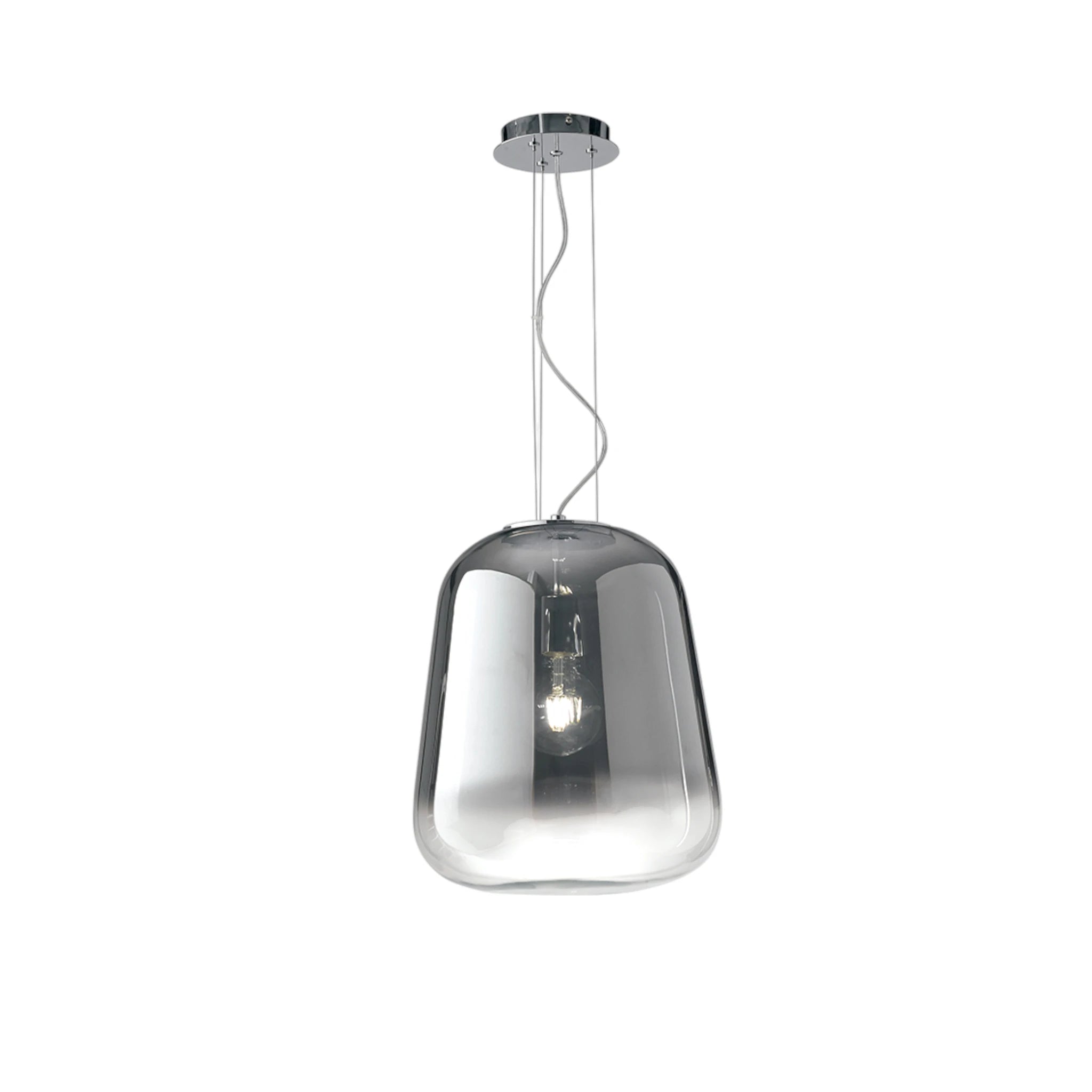 Smoke is a compact pendant lamp with a smoked glass diffuser and a chromed metal structure. With a modern and minimalist design, it adapts to different environments, from the bedroom to the kitchen, giving a touch of originality and a refined atmosphere thanks to its simple and natural materials.