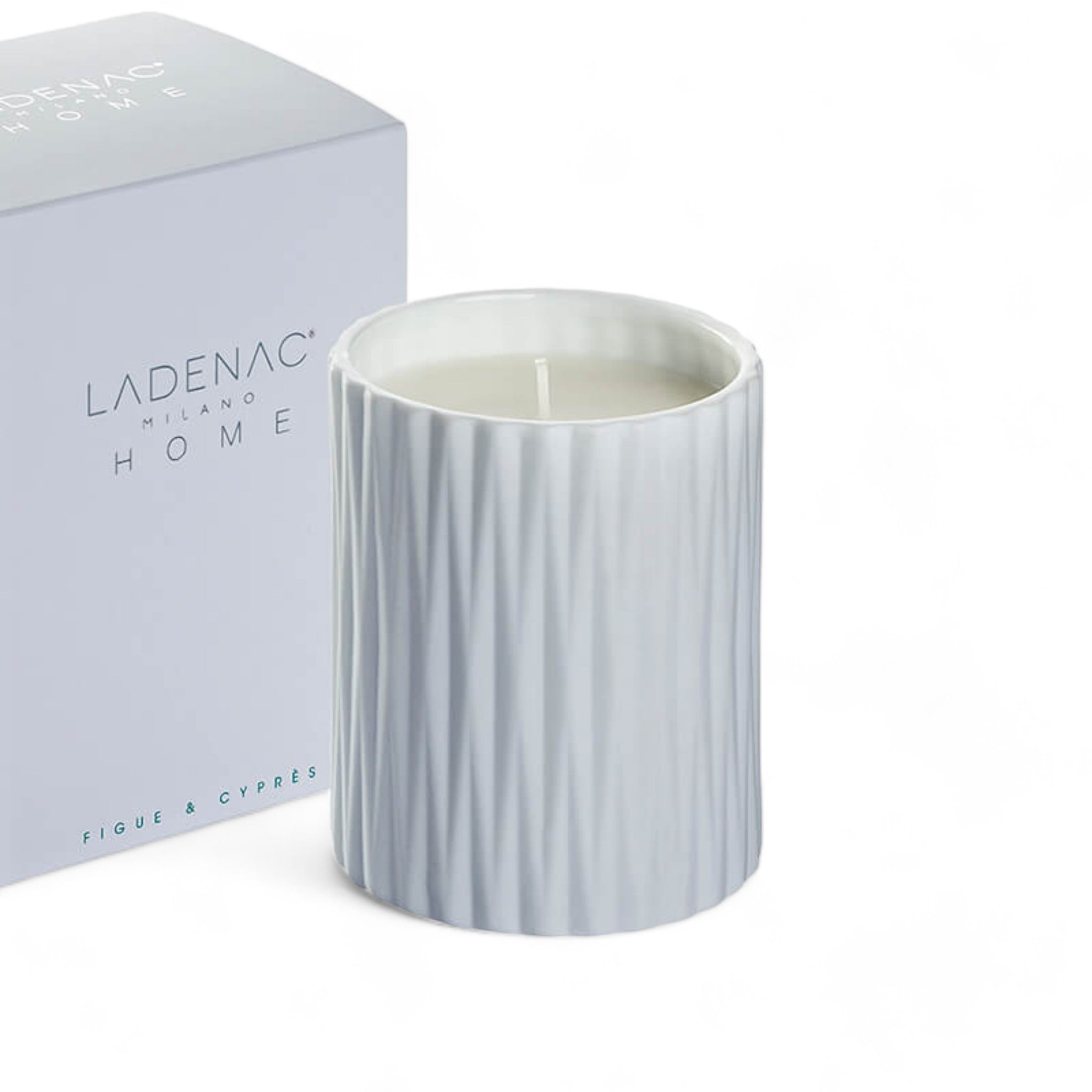 A white ceramic candle decorated with a delicate pleated design and contemporary style. A fresh and spring fragrance, created by the best perfumers.