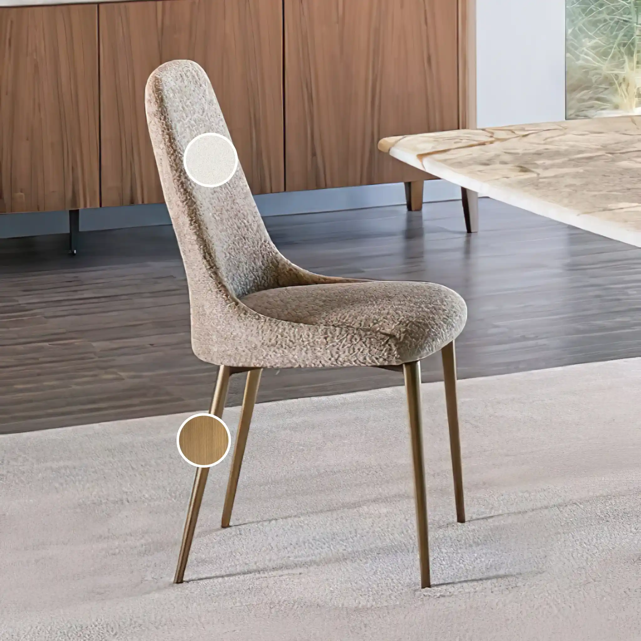 The soft, sinuous lines, contemporary elegance, and versatility of the Sofia chair, along with the soft, ergonomic seat and backrest, make it an icon of comfort applied to design. The exceptionally high-quality materials, meticulous craftsmanship, and numerous frame, color, and finish options make Sofia the perfect chair to bring elegance and bold personality to any space.
