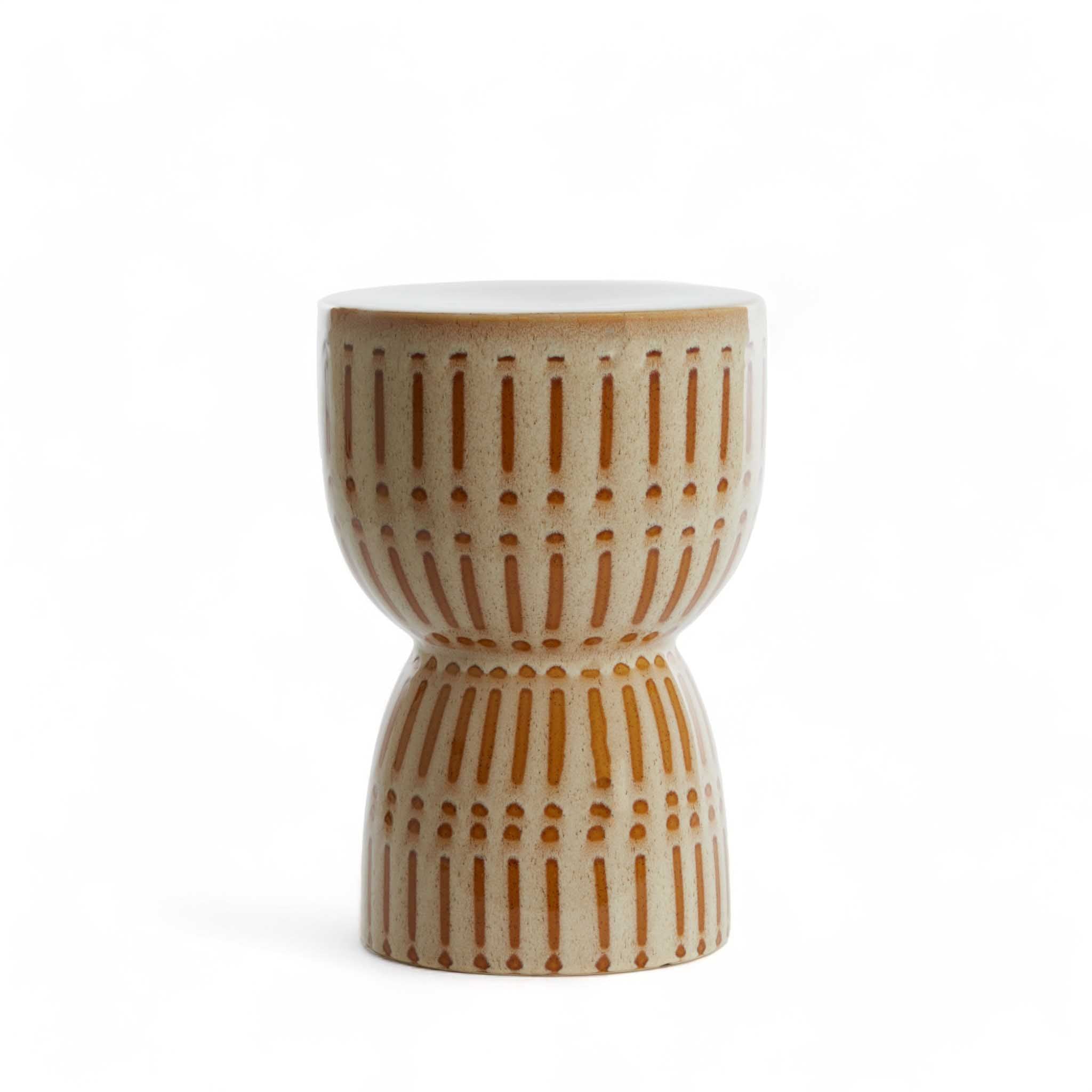The Finca stool, made of polished ceramic with impeccable craftsmanship, is an excellent addition to enrich your home with style and functionality. Its glossy finish and neutral tones of cream and brown blend effortlessly into any decor, adding a touch of elegance.