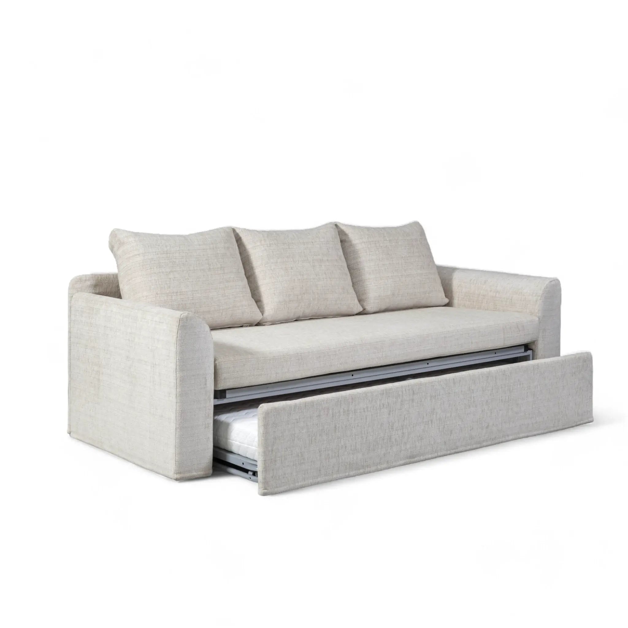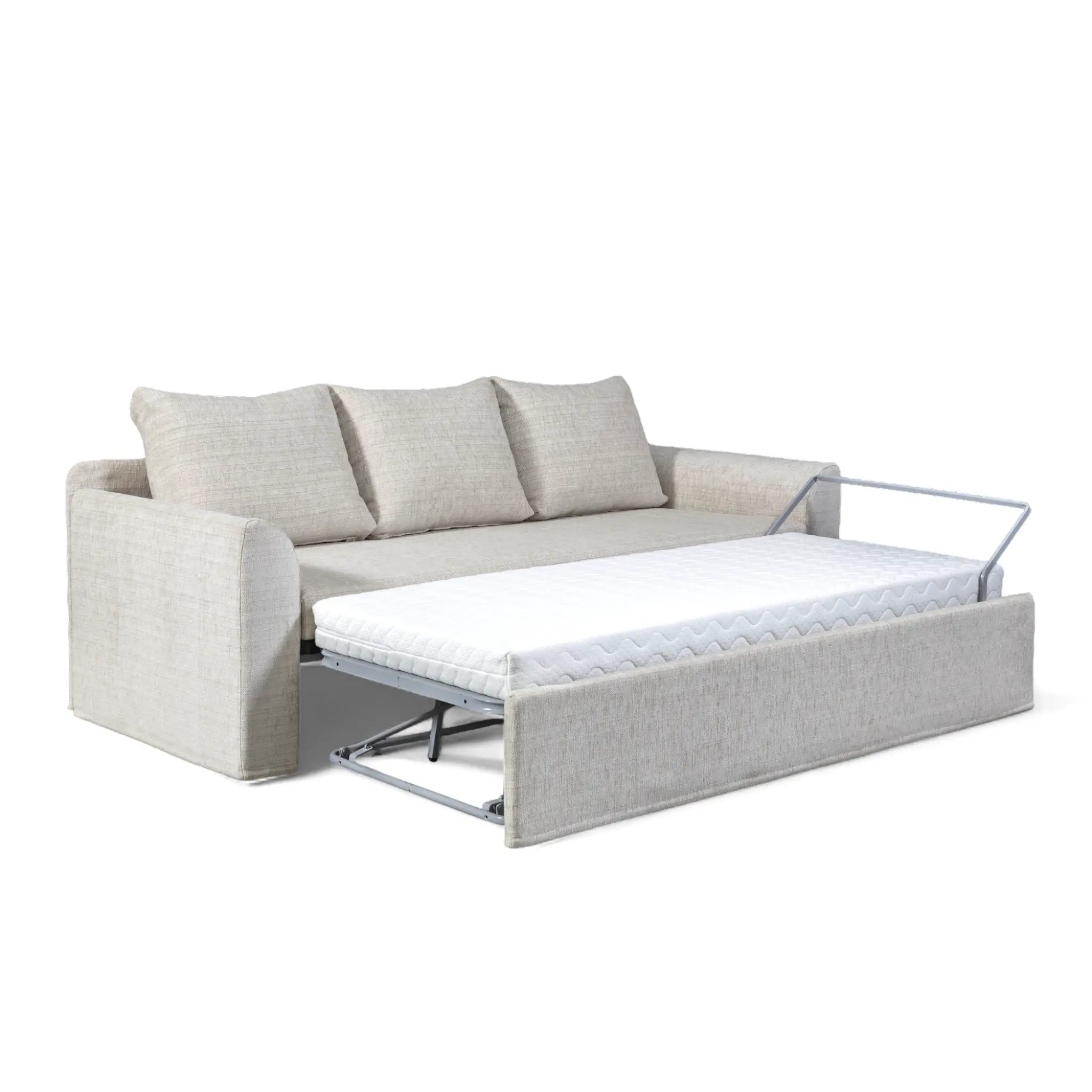 The sofa bed creates a welcoming and refined atmosphere, perfect for those seeking an experience of unparalleled comfort in their living space.