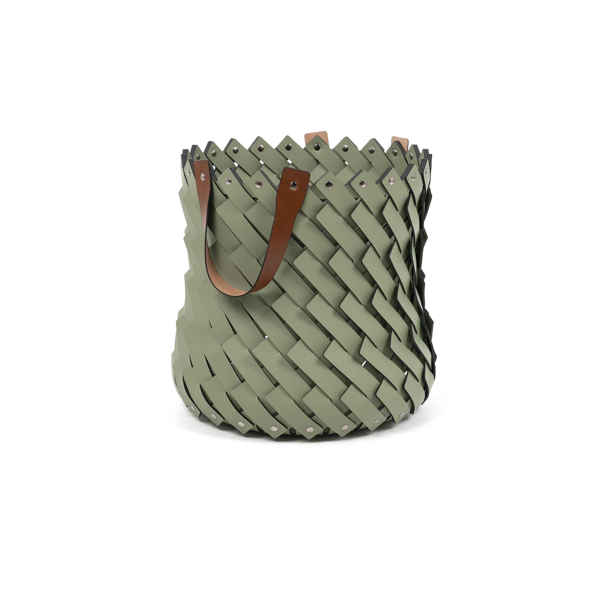 Almeria round basket with leather handles
