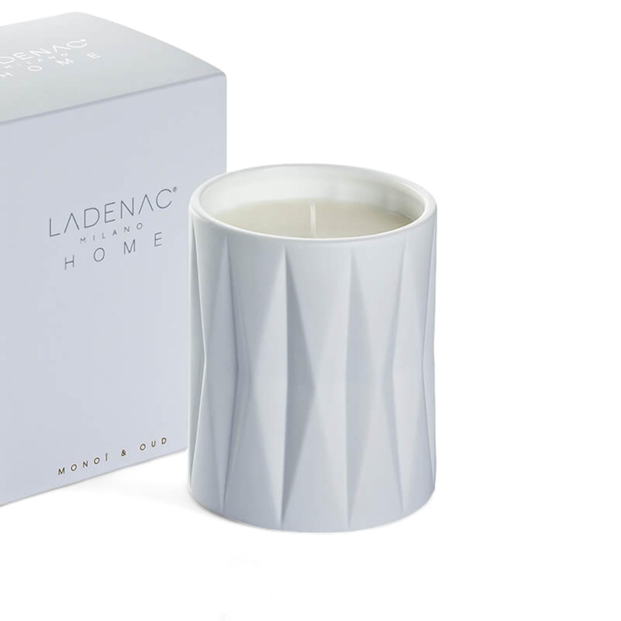 Origami aromatic candle in the Monoi Oud fragrance, with 100% vegetable wax and pure cotton wick.