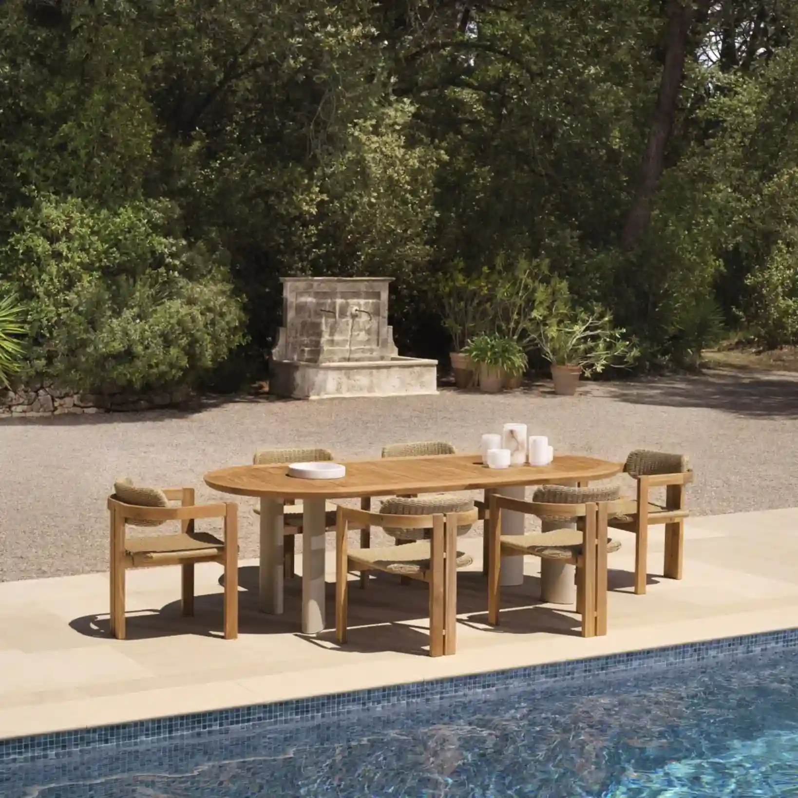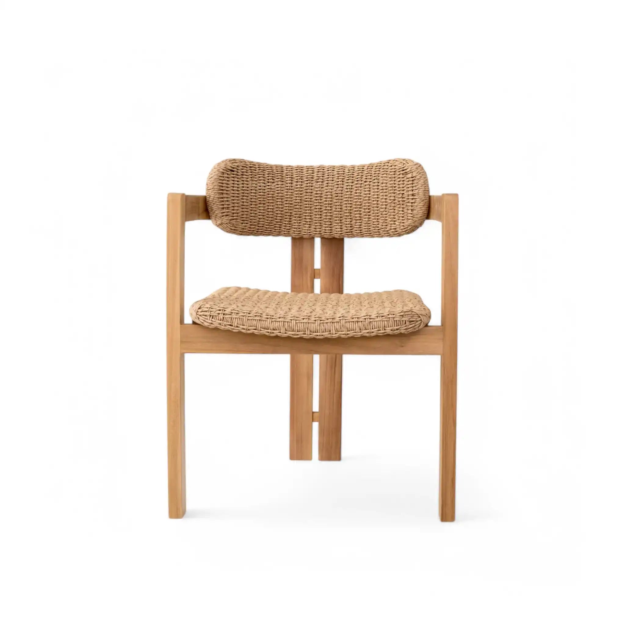 The Donato outdoor dining chair combines natural beauty and durability. Crafted from teak wood, the chair features a polyethylene seat and backrest for exceptional durability and weather resistance, strength and flexibility.