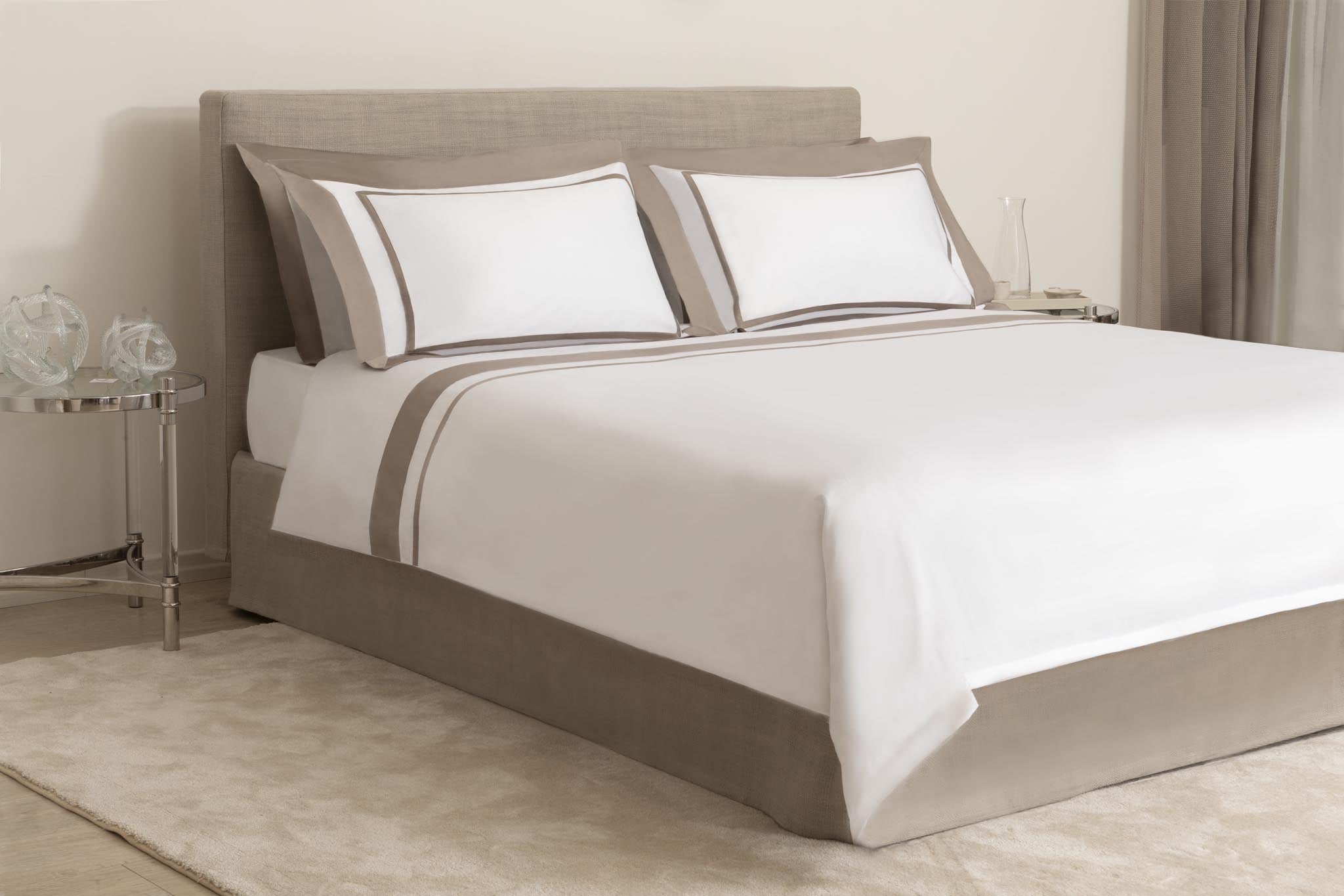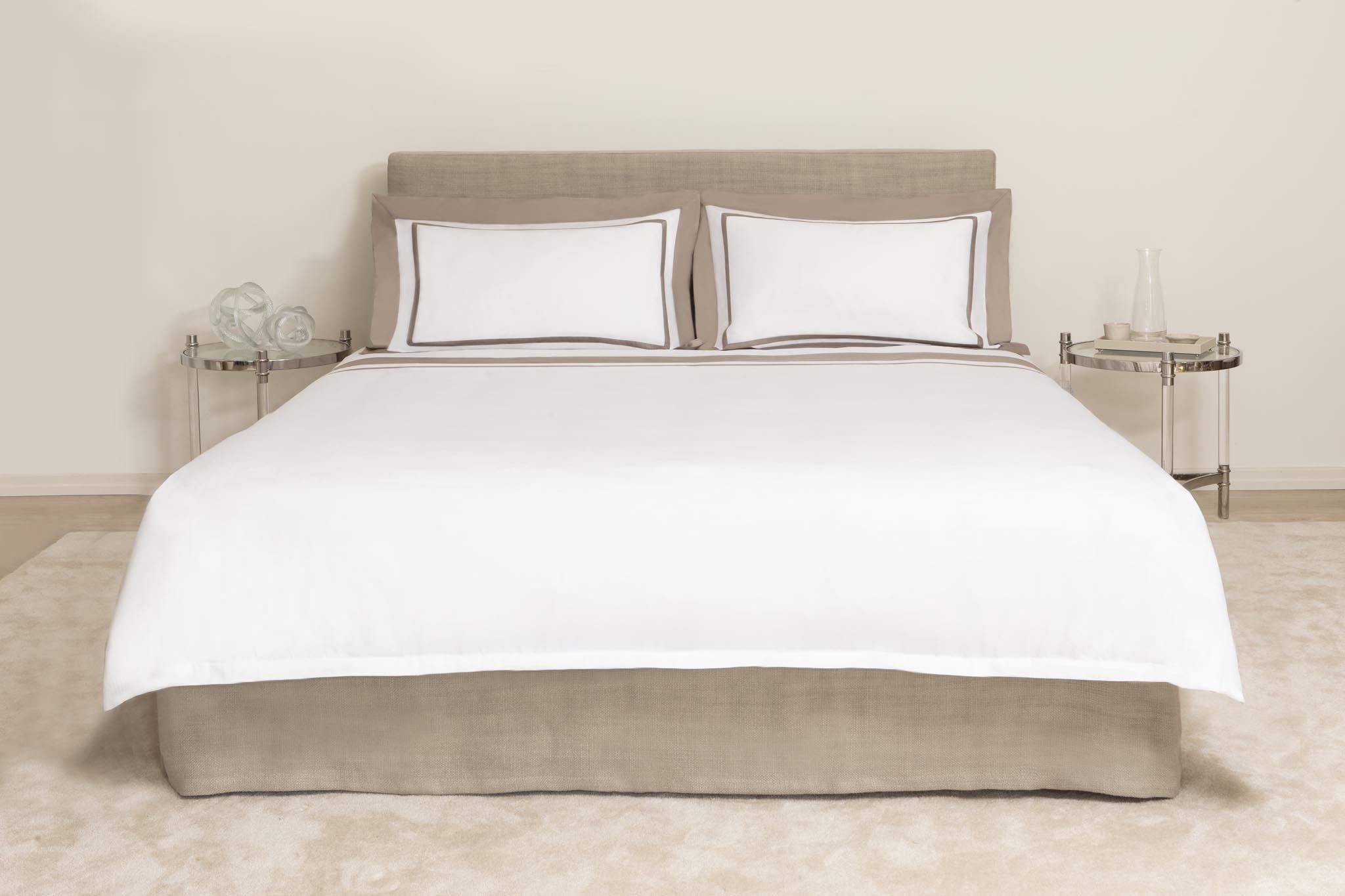 The Double duvet cover features a contrasting frame. Classic Cloto, provides an original accent in the bedroom. Hand cut and handcrafted in Italy.