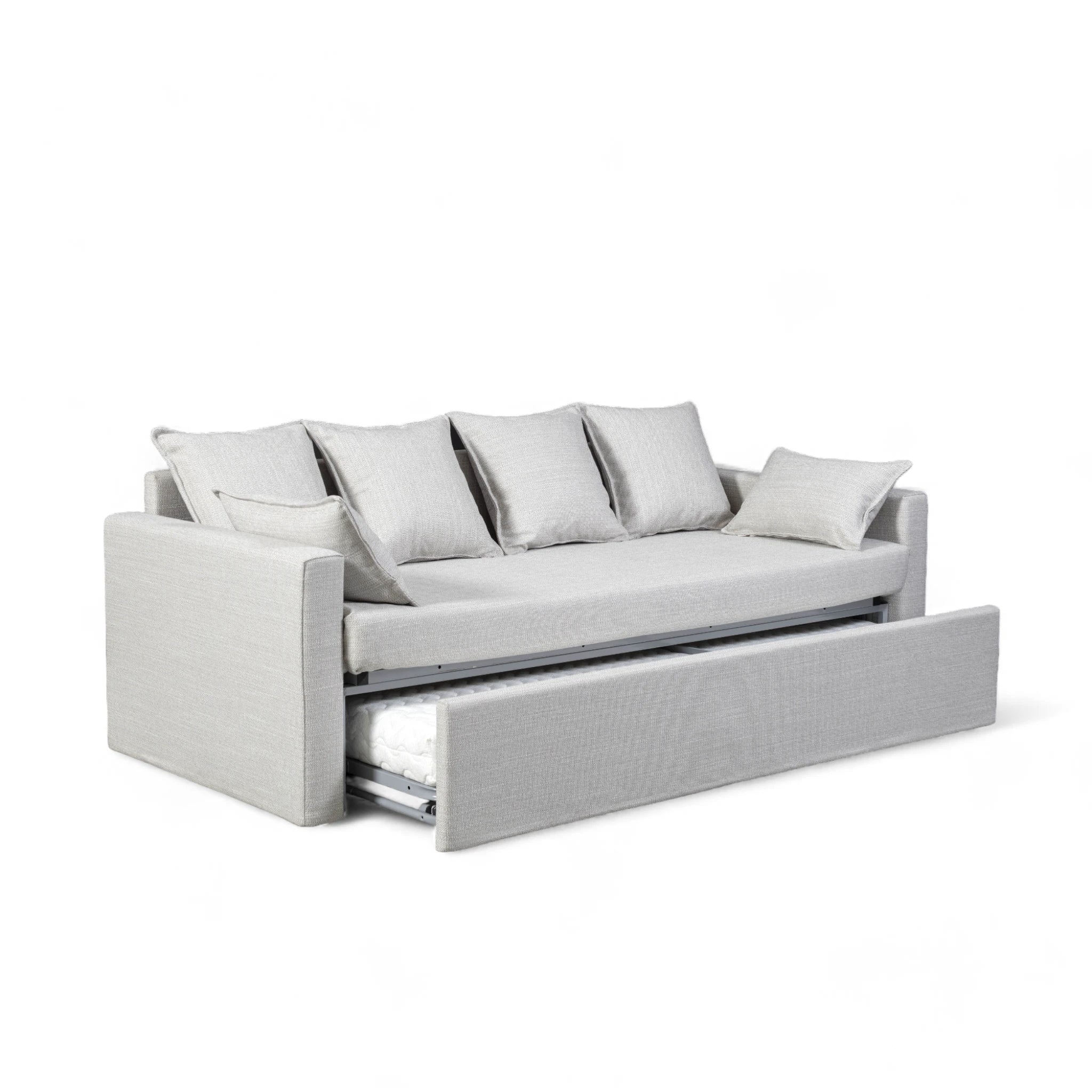 The sofa bed creates a welcoming and refined atmosphere, perfect for those seeking an experience of unparalleled comfort in their living space.