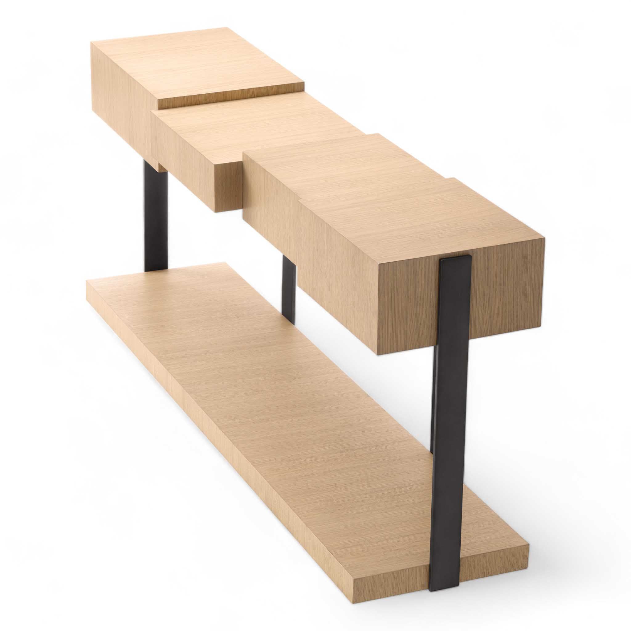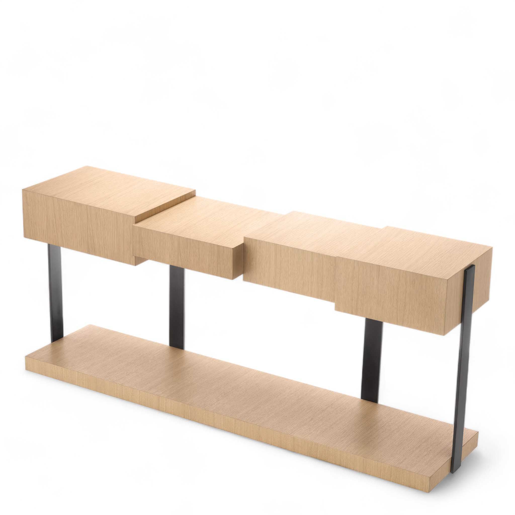 La consolle Nerone presenta un piano squadrato a diversi livelli che conferisce a questa consolle un look decisamente di tendenza. La rifinitura è in bronzo.