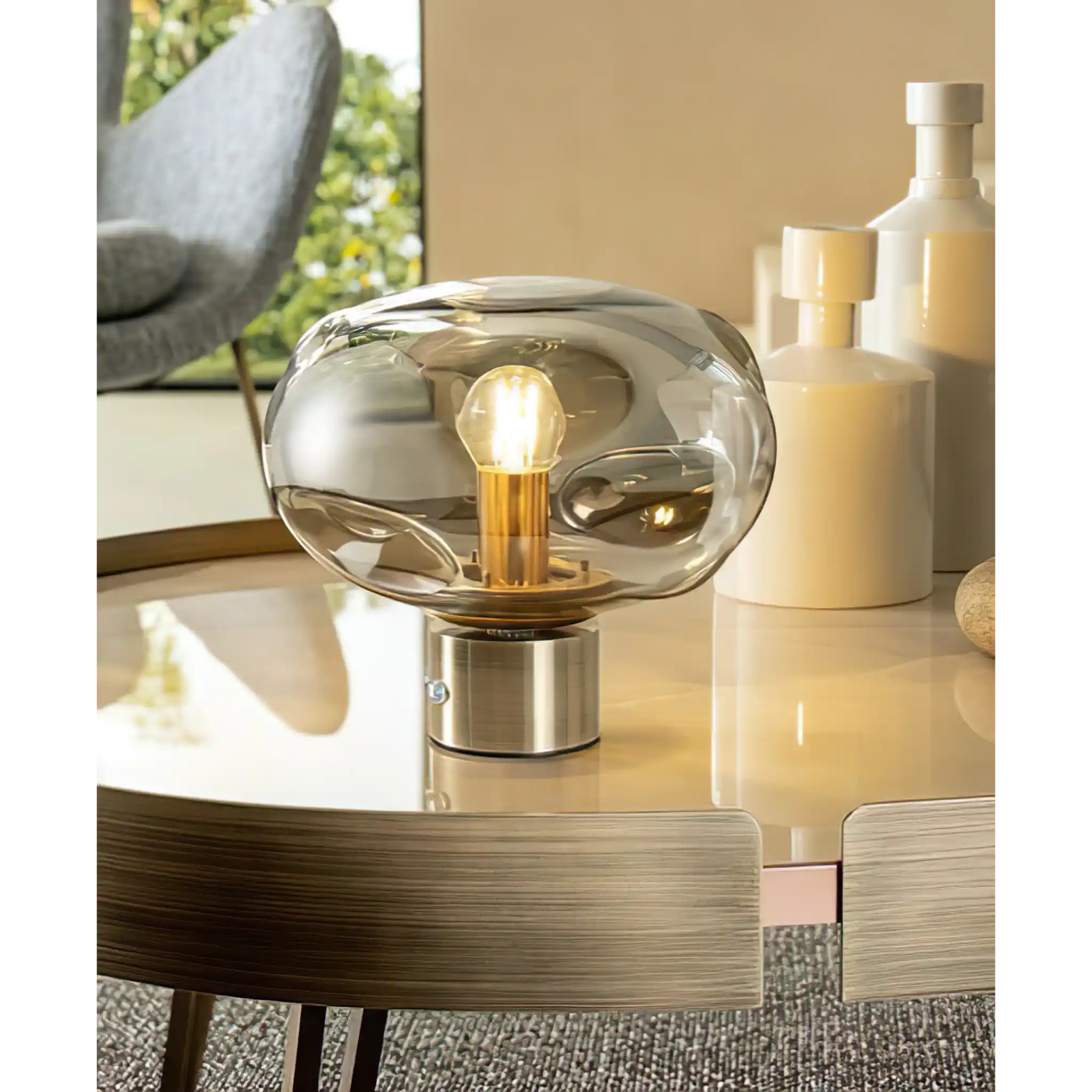 Light and impalpable, NUBOLA recalls the sinuous, rounded shapes of freshly blown soap bubbles and lends a dreamy, relaxing atmosphere to the room. Expert craftsmen shape the molten glass using a blowpipe, creating a transparent Pyrex glass shade that captures the intense expressive power of the design in its utter simplicity. Each piece is as unique and one-of-a-kind as the breath that gave it shape.