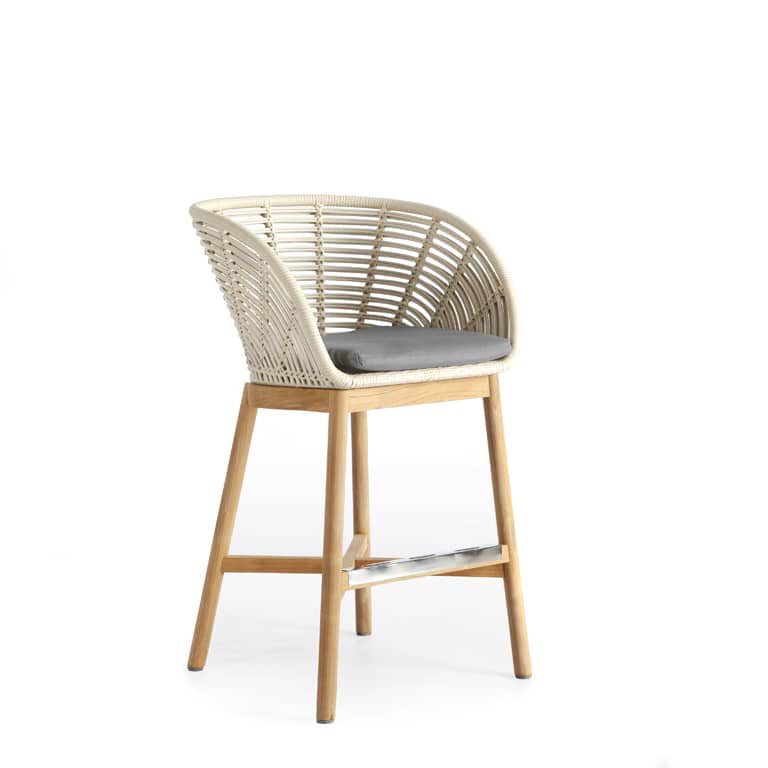 Lo sgabello ALASA aggiunge un tocco di moderna raffinatezza alla vostra area bar all'aperto. Realizzato in legno di teak e HDPE, questo sgabello da bar presenta un design elegante che si integra con qualsiasi arredamento da esterno.