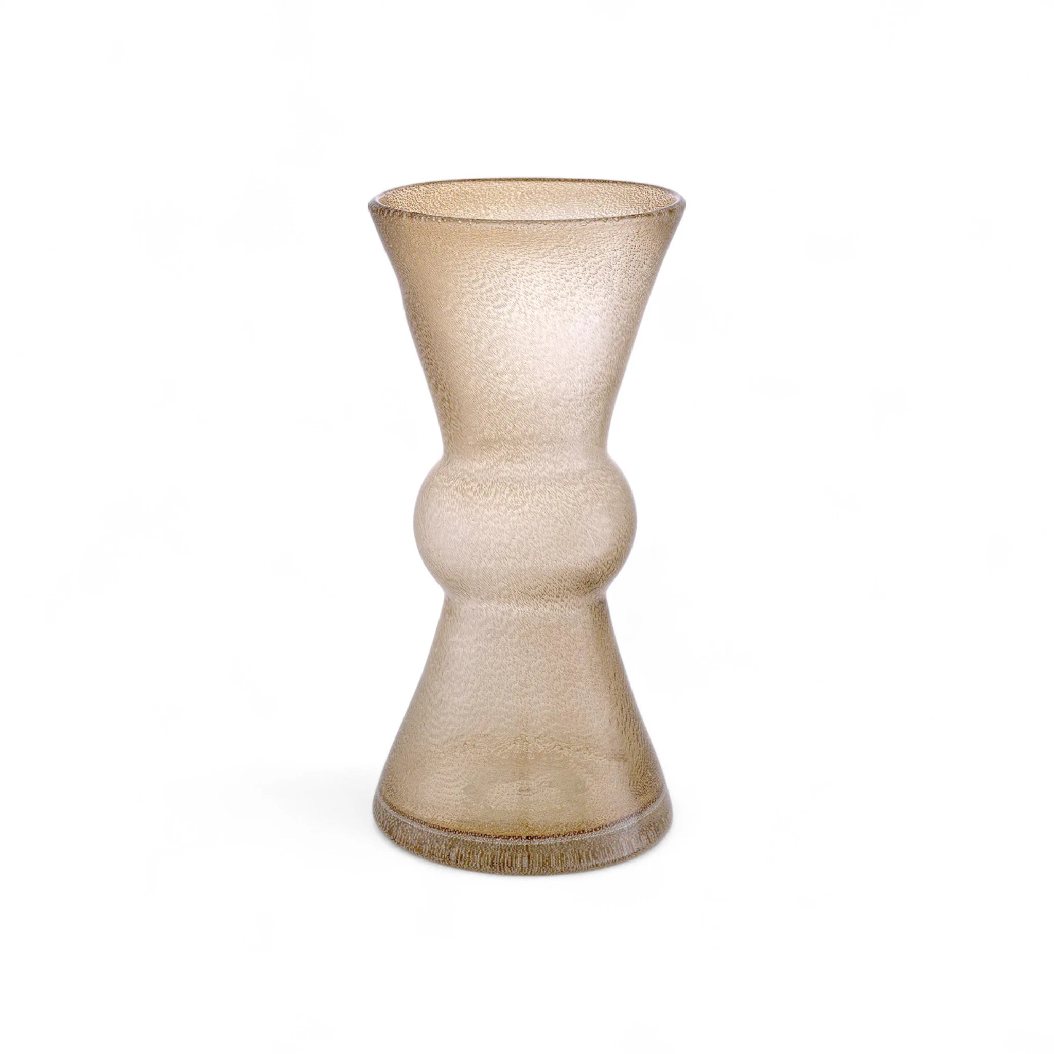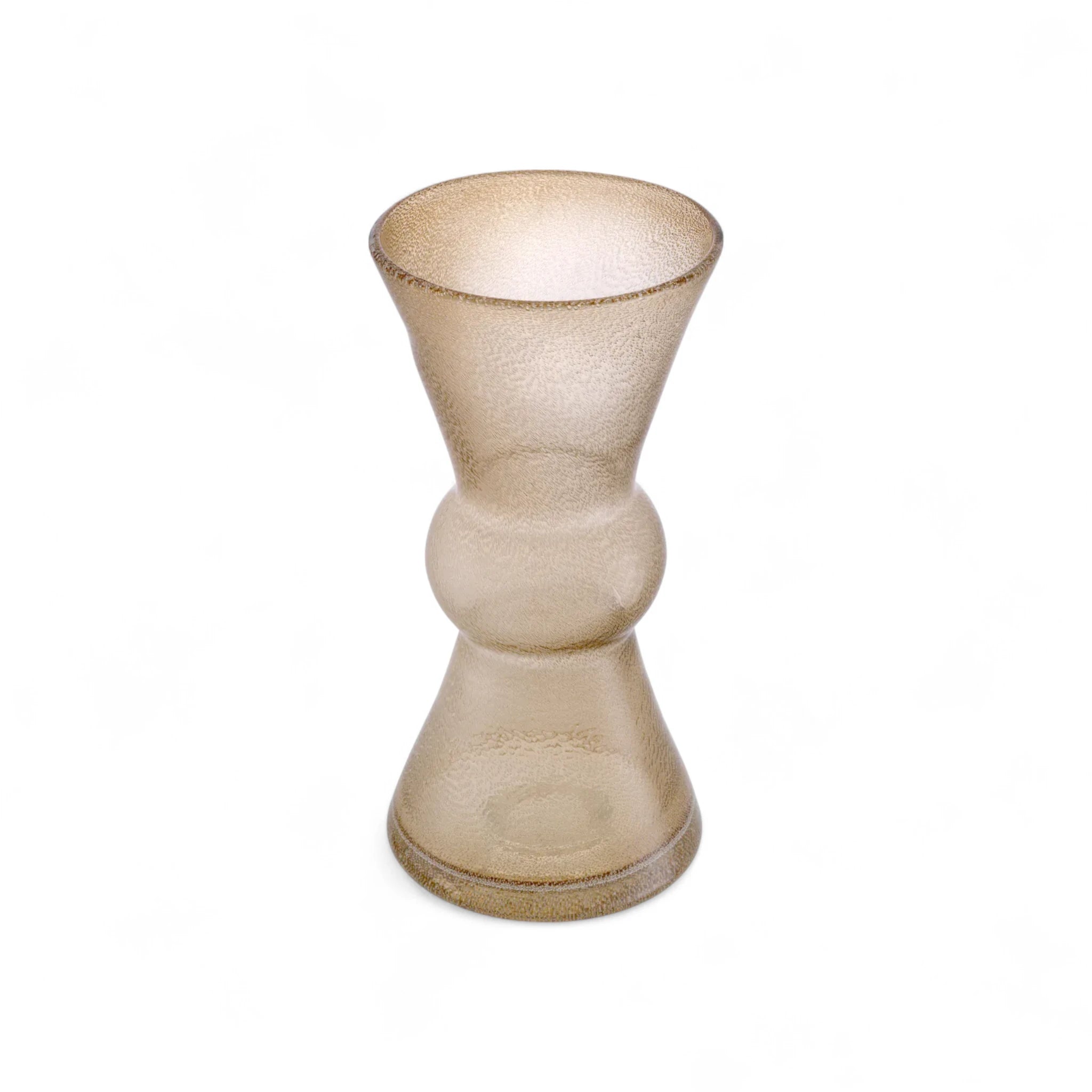 Vaso Axa realizzato a mano in vetro soffiato a mano. Design minimalista ed elegante con piccole bolle che conferiscono a questo vaso di forma irregolare e conica un aspetto caratteristico.