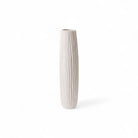 L’occhio si perde fra mille scanalature in un susseguirsi di piani, che inseguono la fitta struttura lamellare. Candidi vasi in porcellana, come eleganti colonne, vestigia di una bellezza classica dal design contemporaneo.