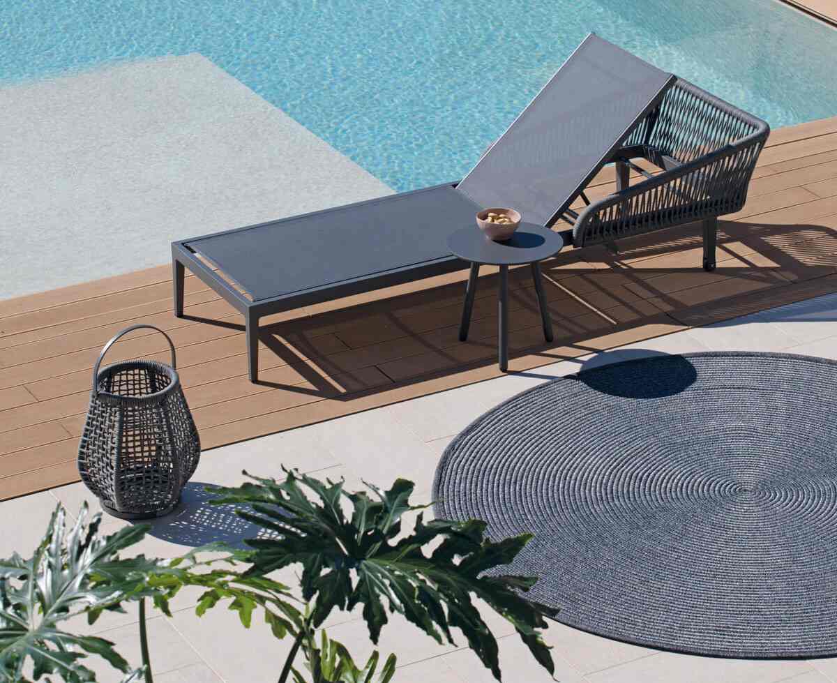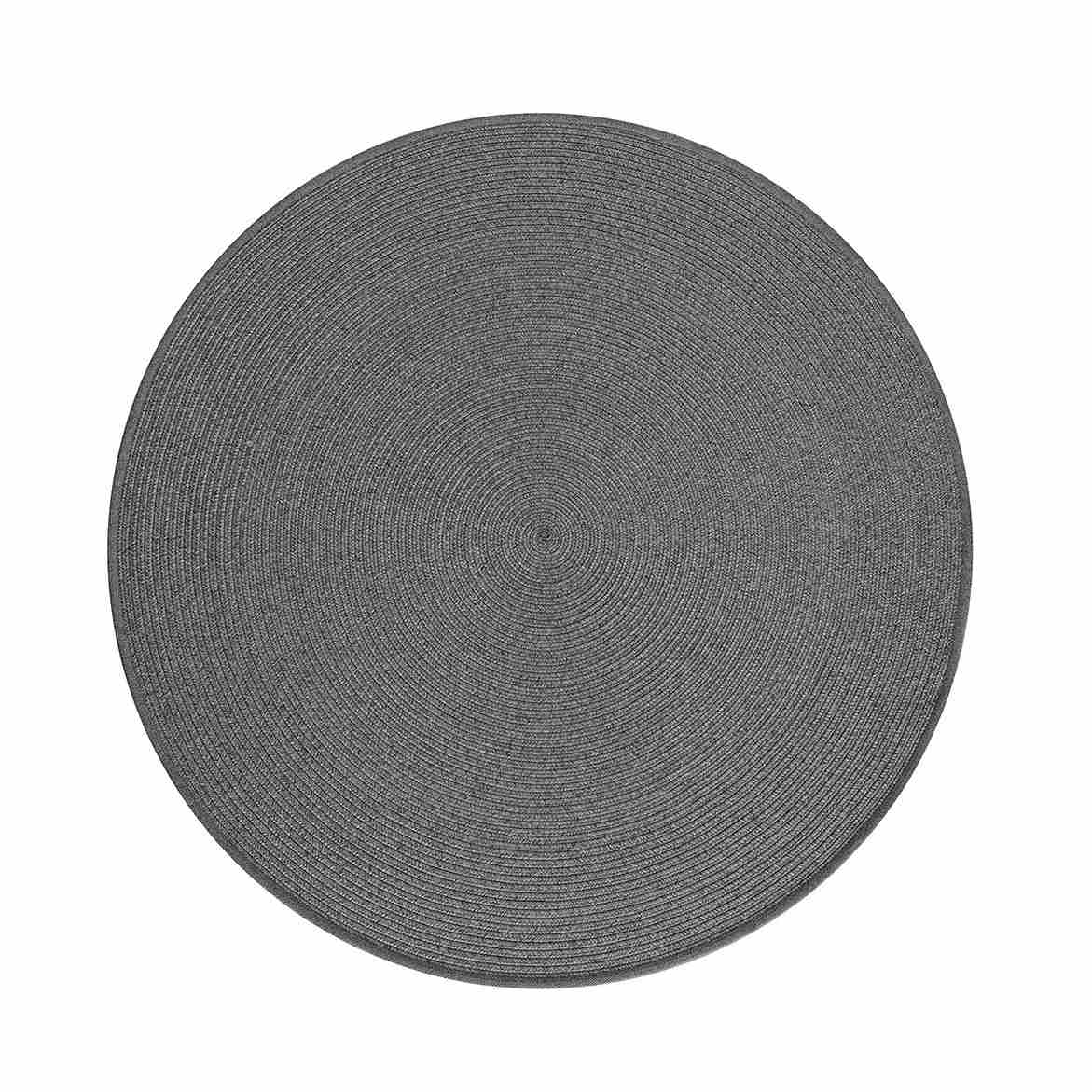 Tappeto realizzato in fibra di poliestere e polipropilene intrecciato a mano. Composizione 85% poliestere, 15% polipropilene.