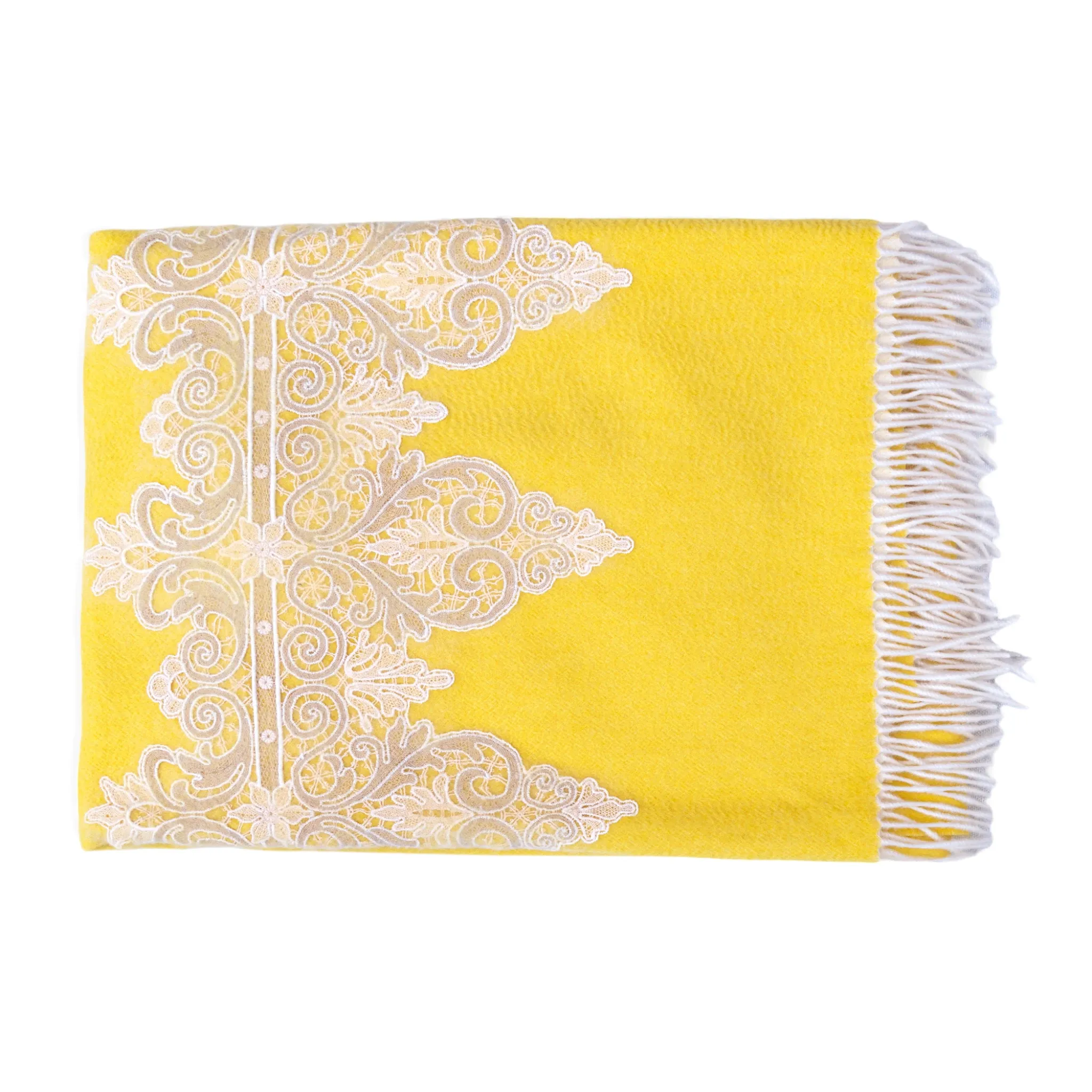 Plaid in cashmere Jesurum con merletto applicato con agugliatura, perfetto per arricchire la camera da letto o il soggiorno con un tocco di lusso.